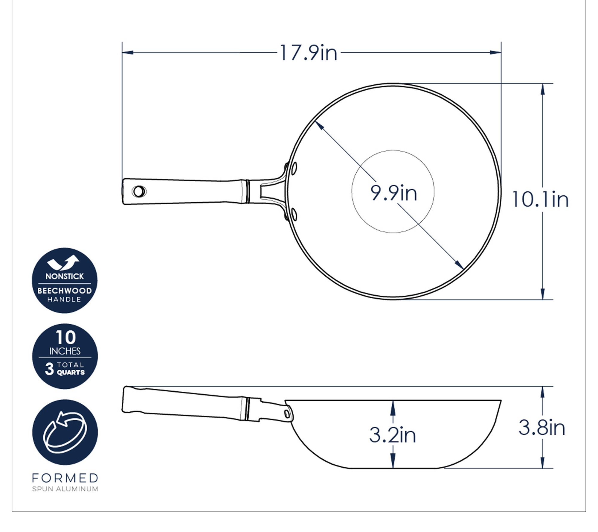 • Aluminum construction with natural wood handle for fast, even heating and stylish accents