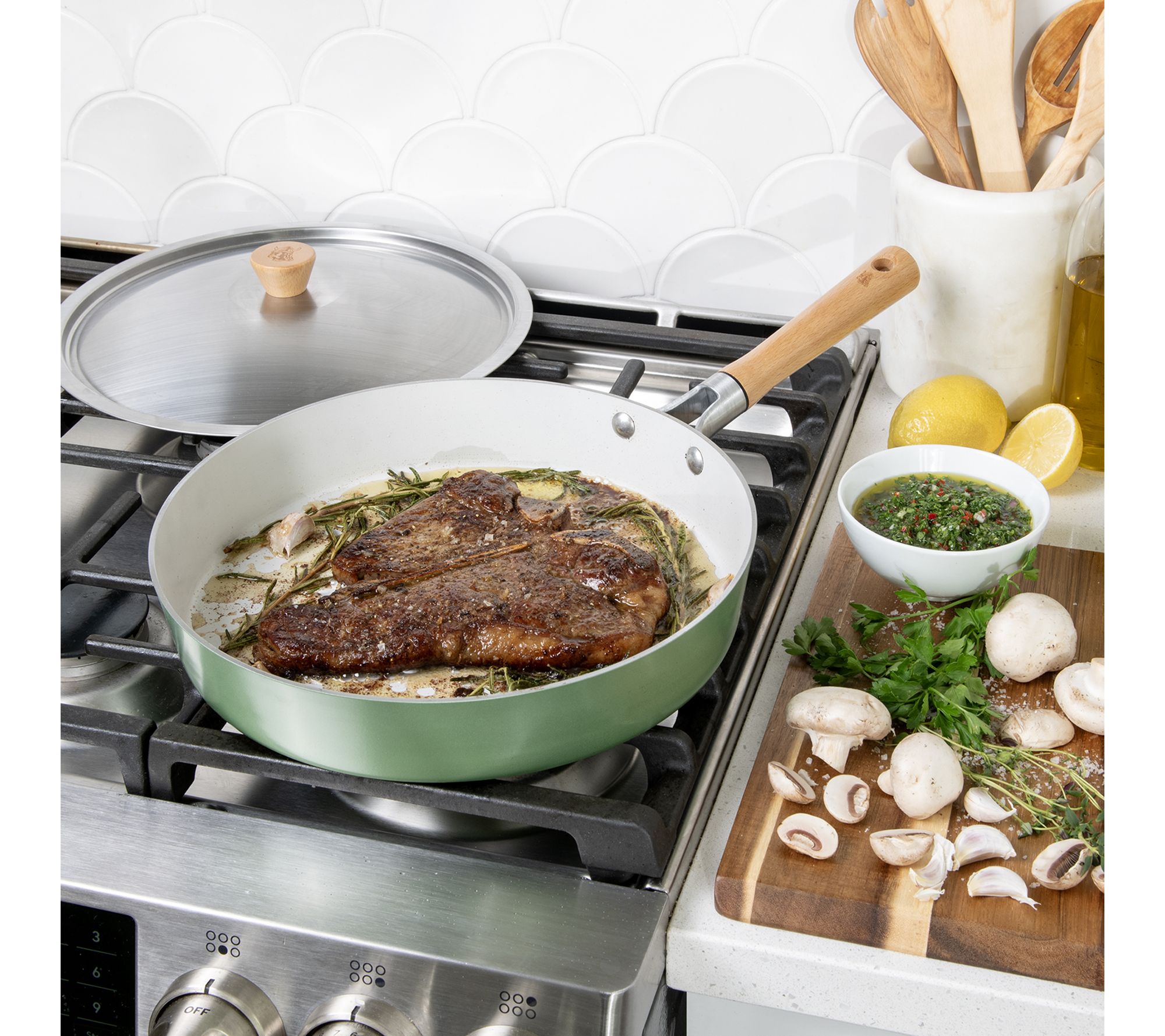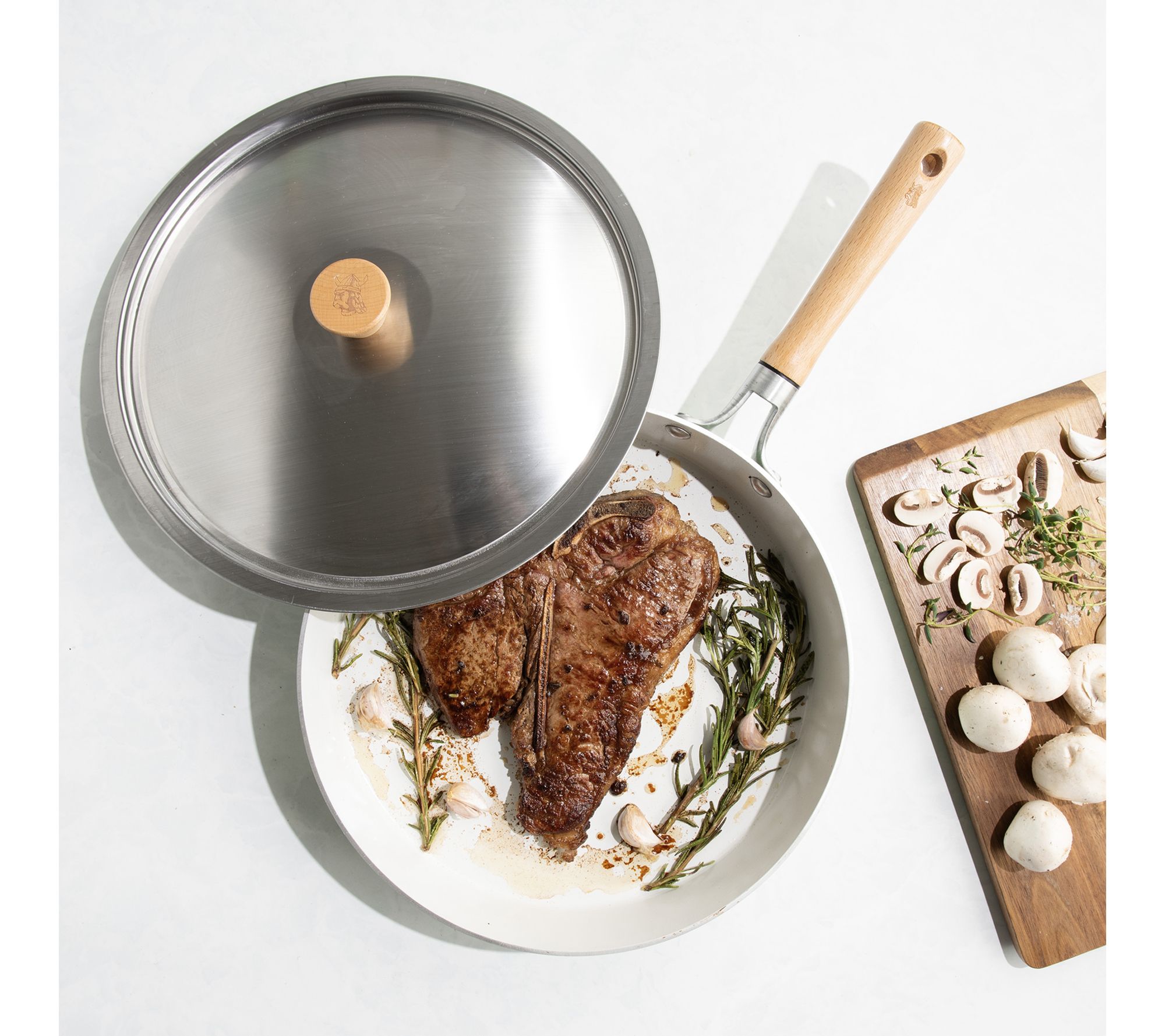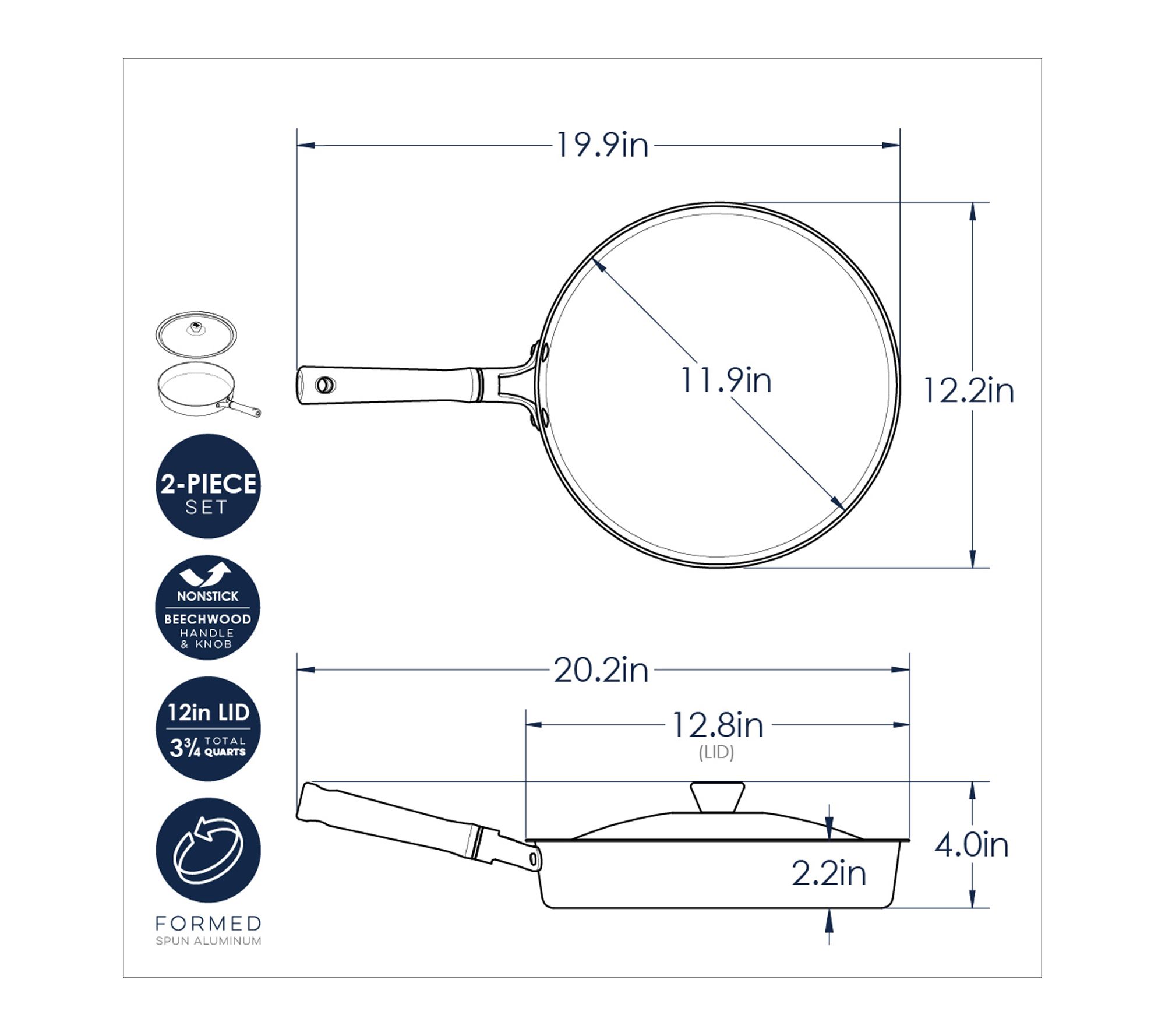 • Includes one 12" frying pan and matching lid