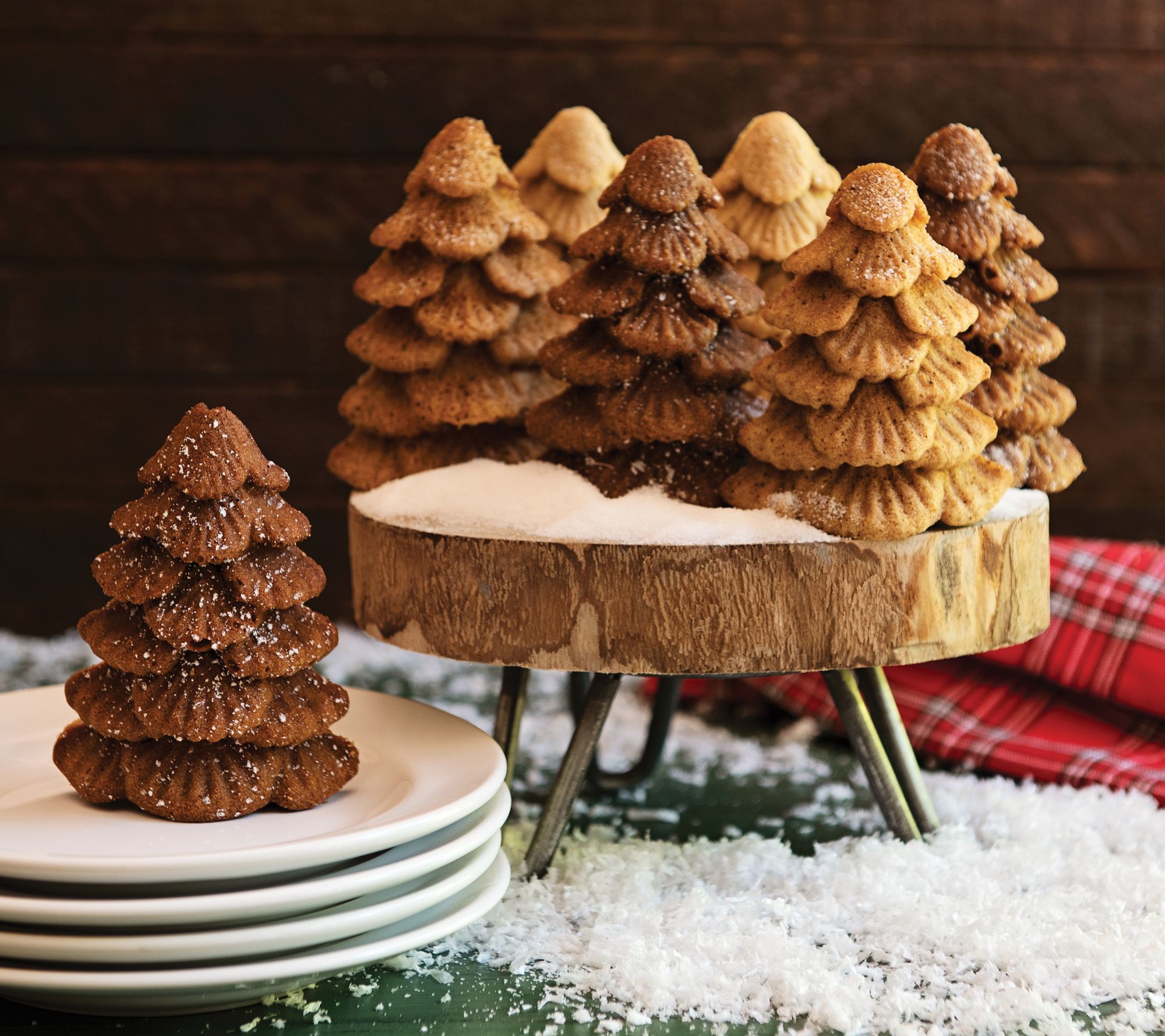 Bake delightful small cakes in the shape of evergreen trees and dust them with powdered sugar for a perfectly magical dessert. From Nordic Ware.