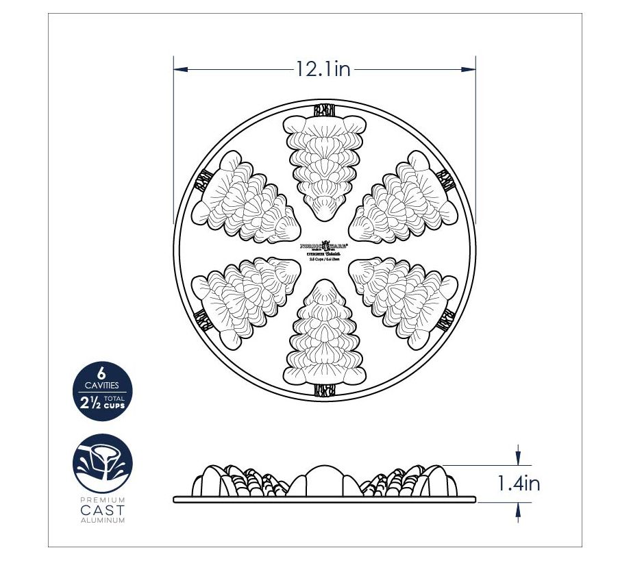 Dress up your dessert table with fancy sweet treats made in this evergreen cakelet pan. From Nordic Ware.