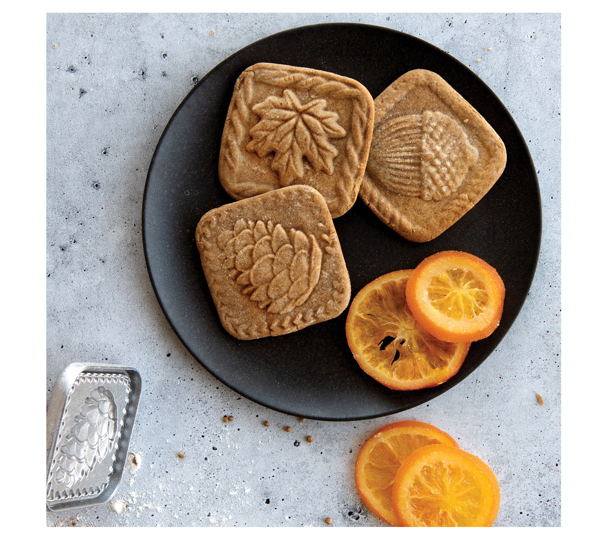 Create delightful and festive cookies with the Nordic Ware fall forest springerle cookie stamps. These stamps feature intricate woodland designs, perfect for adding a touch of nature to your fall and winter treats. Simply press into your dough to create beautiful imprints that will impress at any gathering. From Nordic Ware.