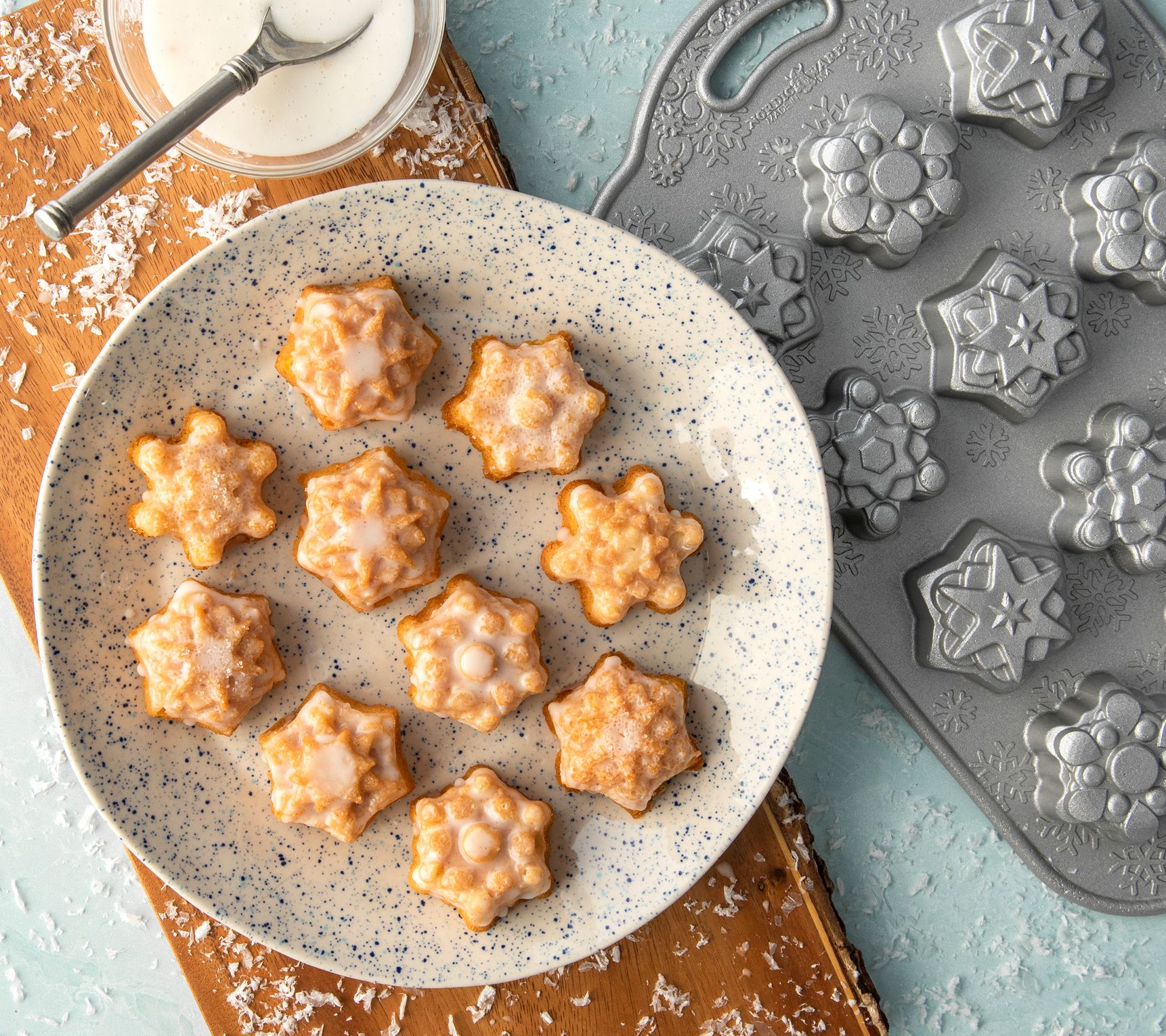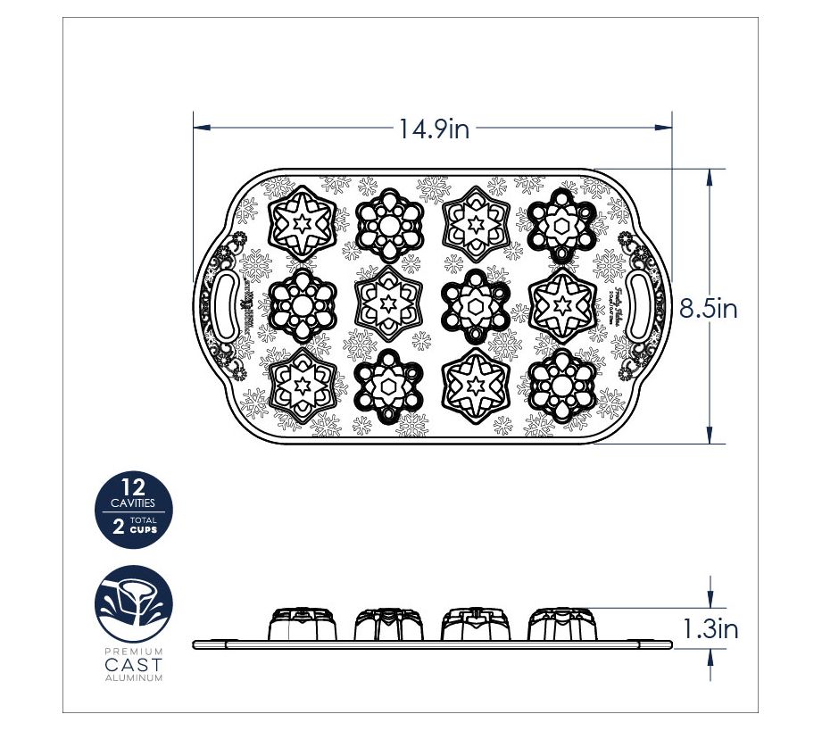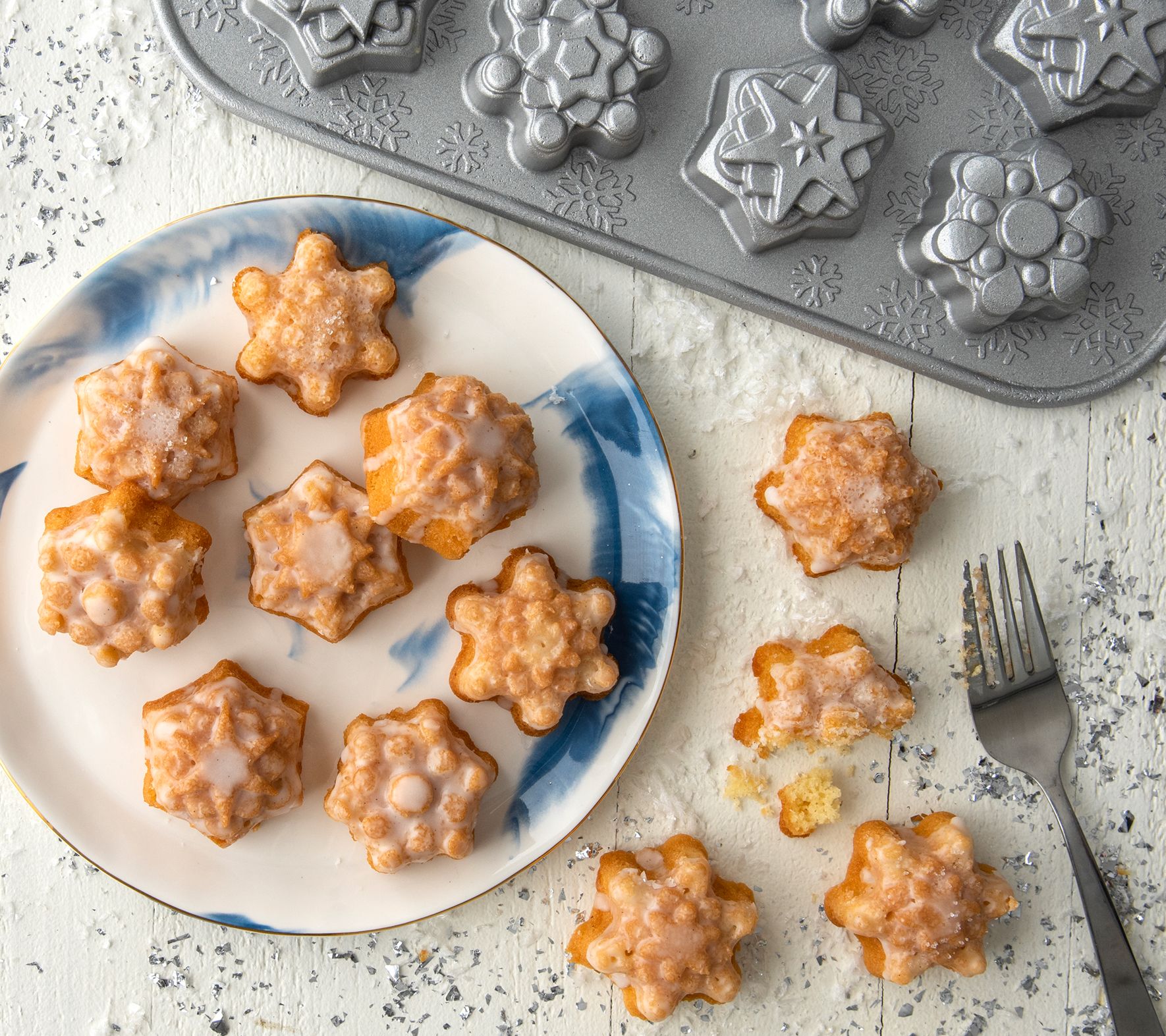 • 12 individual snowflake-shaped cakes