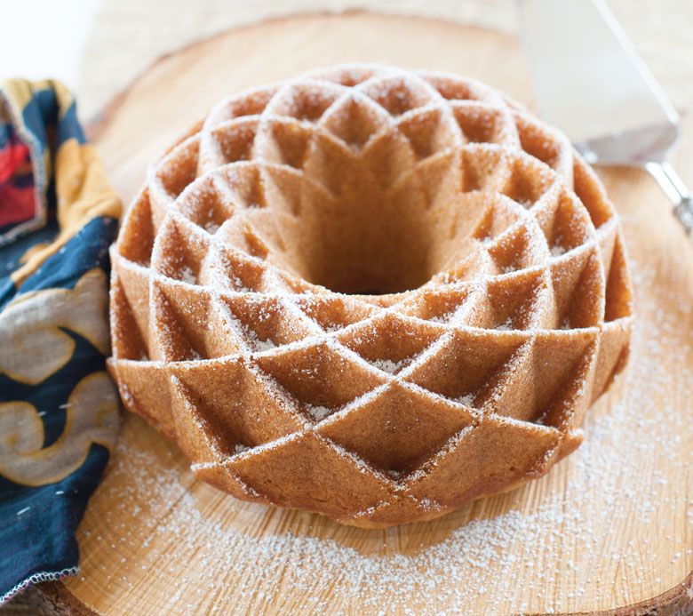 A celebration's in order! Bake a cake in this Nordic Ware Jubilee bundt pan, and serve something truly special. The Diamond Jubilee-inspired pan reveals hidden, heart-shaped designs with pockets to capture glaze drippings. From Nordic Ware.