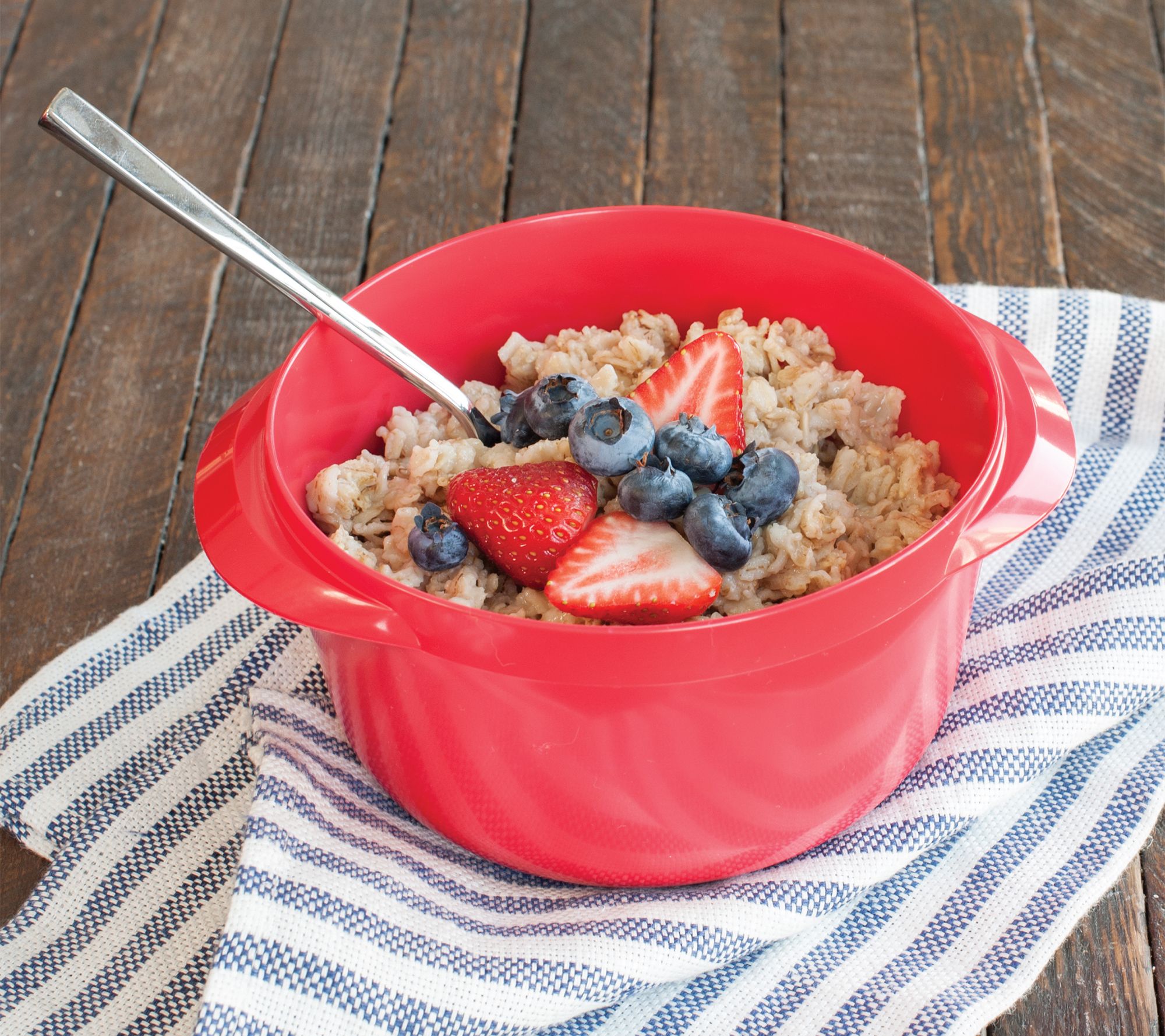 Skip the stove and easily boil your favorite rice, pasta, oatmeal, vegetables, and meats in a jiffy with this handy microwave cooker. It features a handy lid to prevent boil-overs which doubles as a strainer. From Nordic Ware.