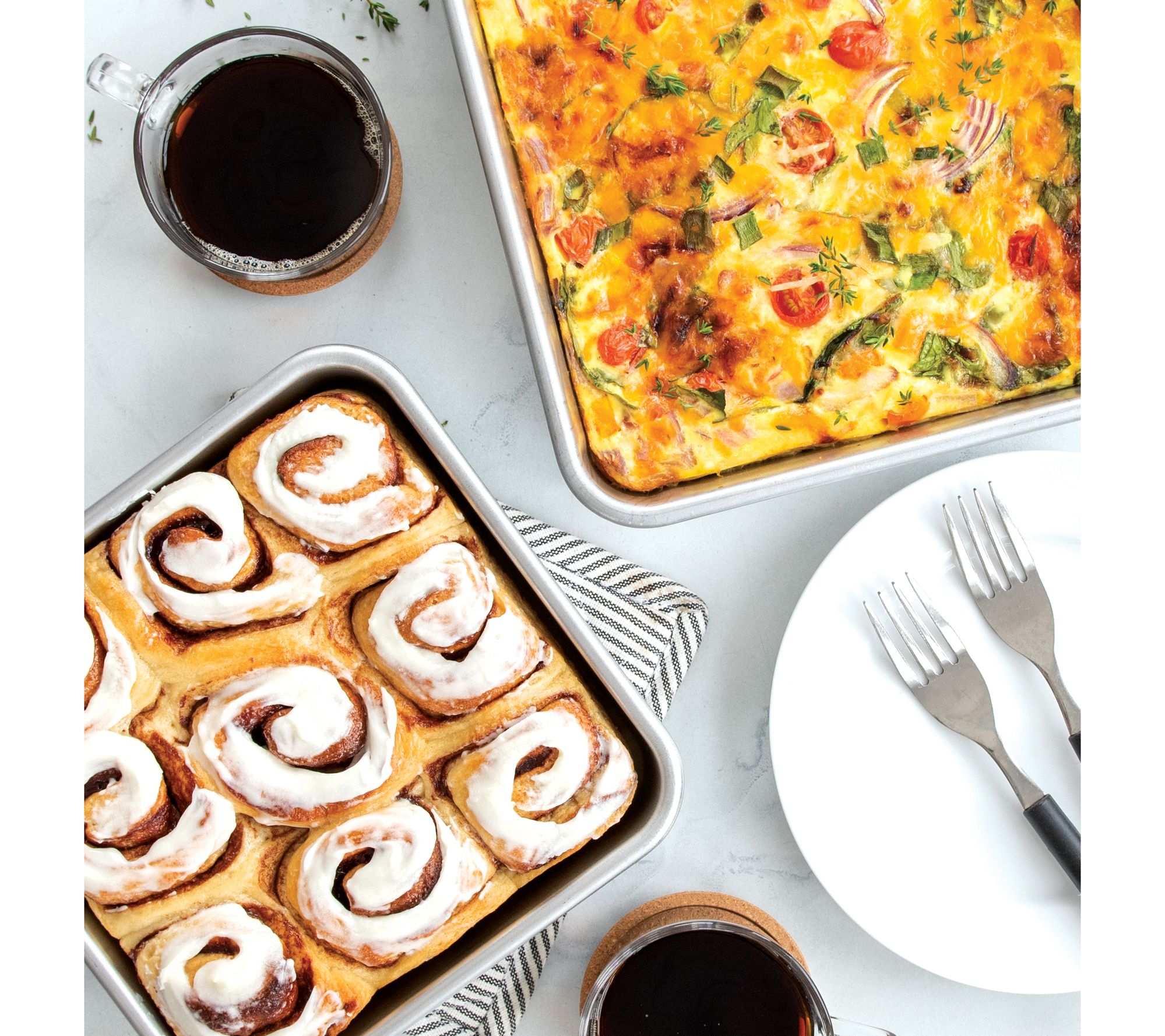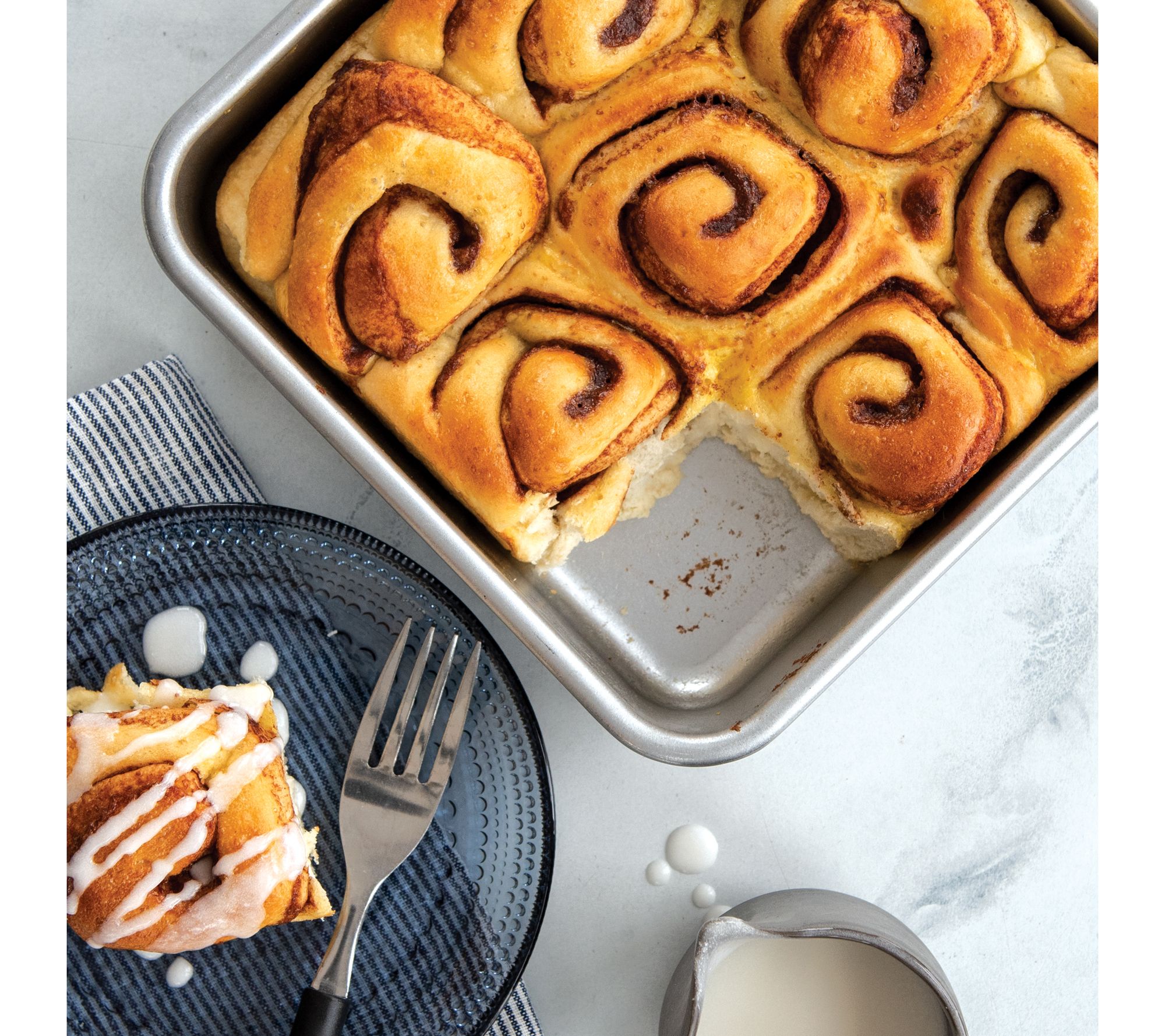 Bake brownies, lemon bars, and more with this square cake pan and achieve thicker, taller results. Made from natural uncoated aluminum, it ensures ultra-even browning and features an encapsulated steel rim to prevent warping. From Nordic Ware.