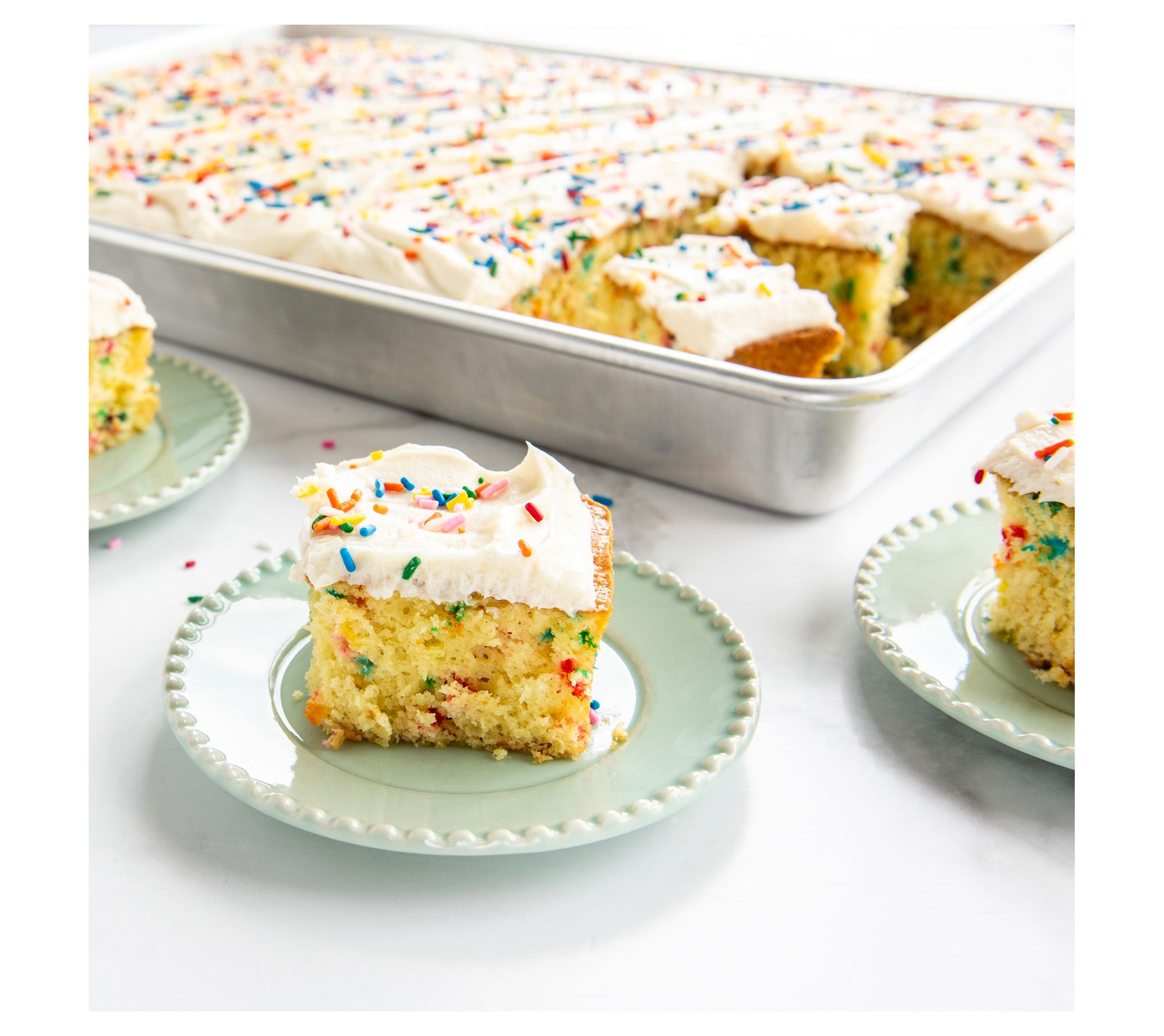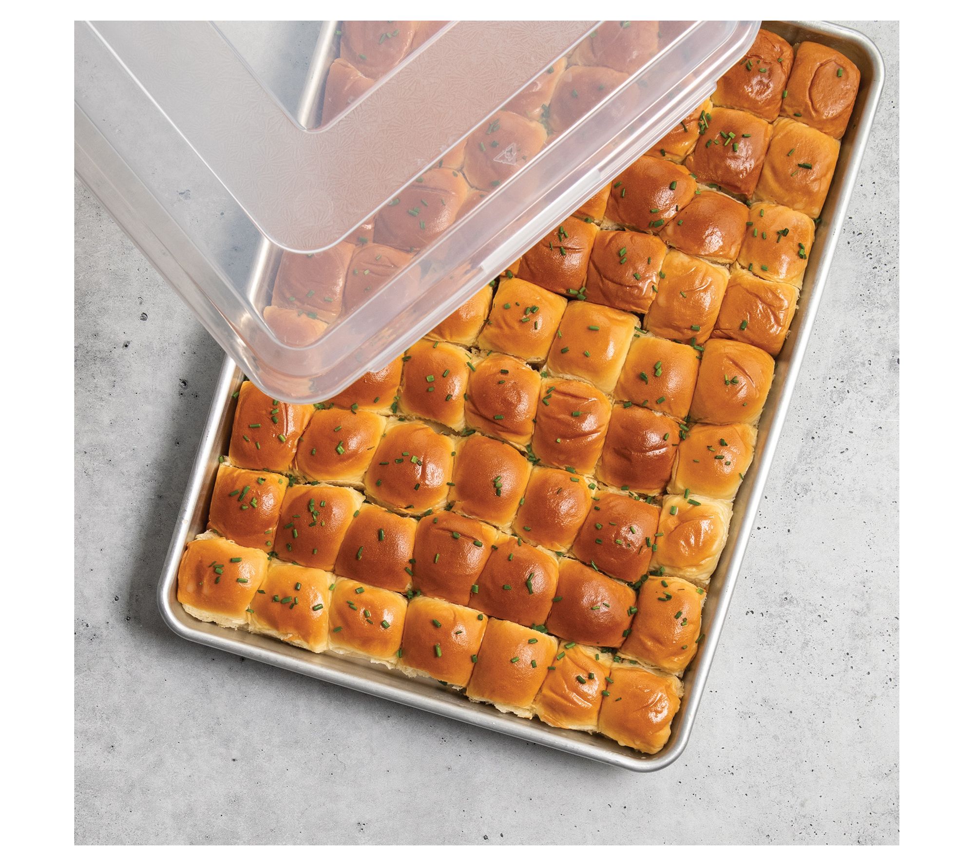Tackle baking projects for a crowd in one go with this extra-large aluminum bakeware set, featuring two high-capacity pans and a convenient storage lid. Easy to transport and ideal for cookies, cakes, roasted veggies, or meal prep, the pure aluminum construction offers even heating and consistent results every time. From Nordic Ware.