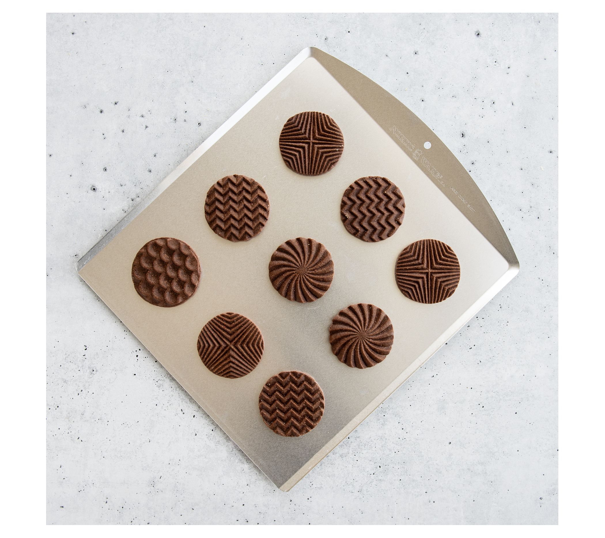 Enjoy perfectly browned cookies every time with the Nordic Ware naturals large classic cookie sheet. Designed with three raised edges for easy handling and a smooth fourth edge for effortless sliding, this pan is a must-have for baking enthusiasts. From Nordic Ware.
