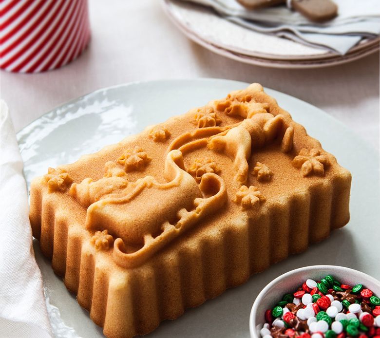 Invite Santa and his magical reindeer to your home with the help of this adorable set. Comes complete with a nonstick pan and a loaf keeper that doubles as a serving tray. From Nordic Ware.