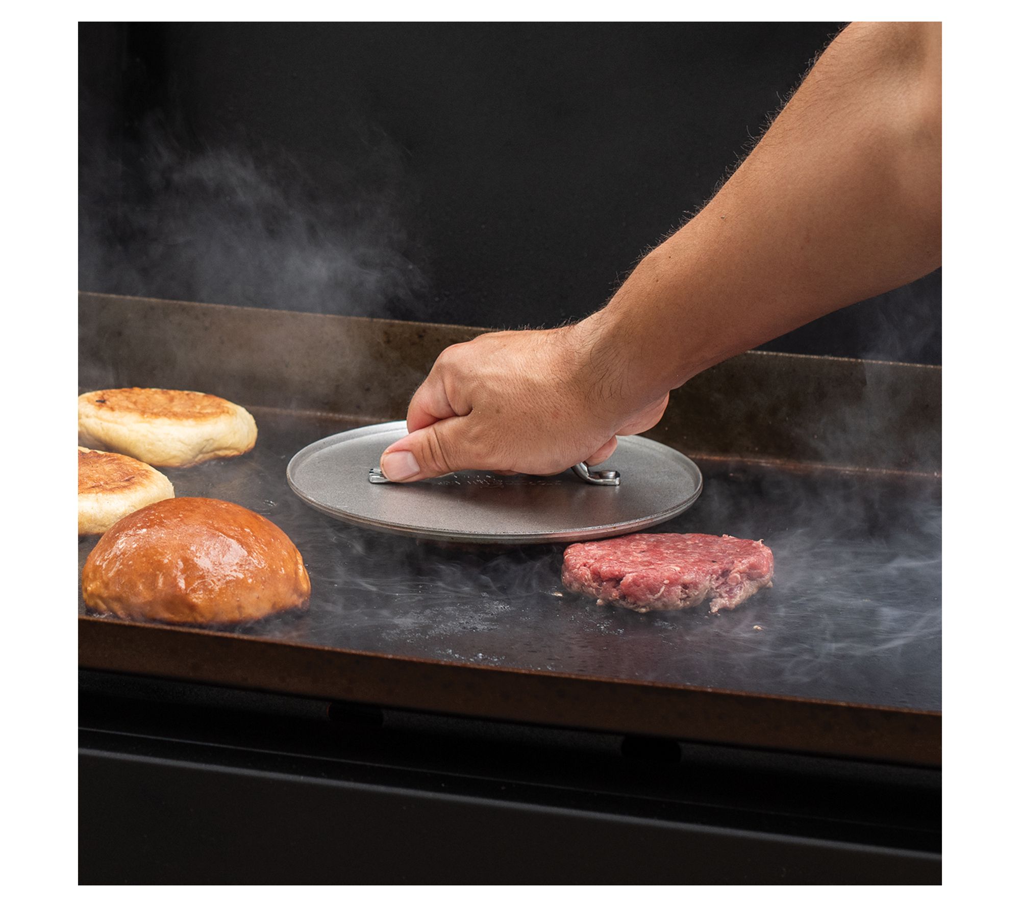 Unleash your culinary creativity with a weighted grill press designed for the passionate cook. Whether you're crafting smash burgers or achieving that perfect sear on meats, this tool handles it all with ease. Its sturdy construction allows it to double as a sandwich press, perfect for melting cheeses and compressing quesadillas. Simply pre-heat to speed up cooking from both sides, creating golden crusts effortlessly. A versatile must-have for any kitchen enthusiast. From Nordic Ware.