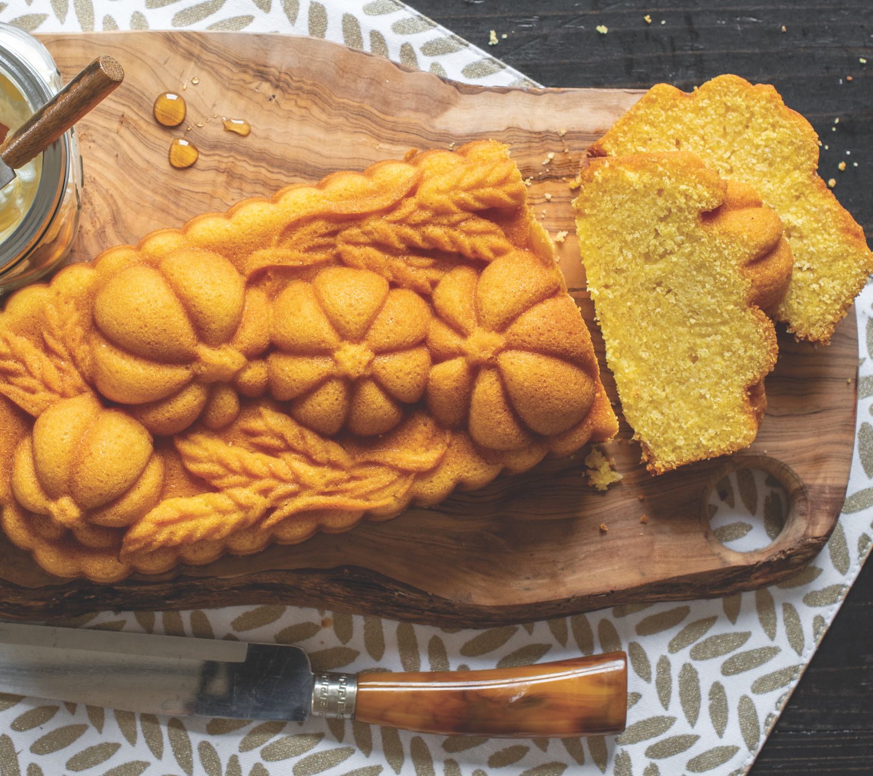 Have your cake loaf (or bread) -- and store it, too! Bake your fave loaf or bread recipe in the detailed Wheat and Pumpkin pan, then store what's leftover in the handy loaf cake keeper (if there's any left). From Nordic Ware.