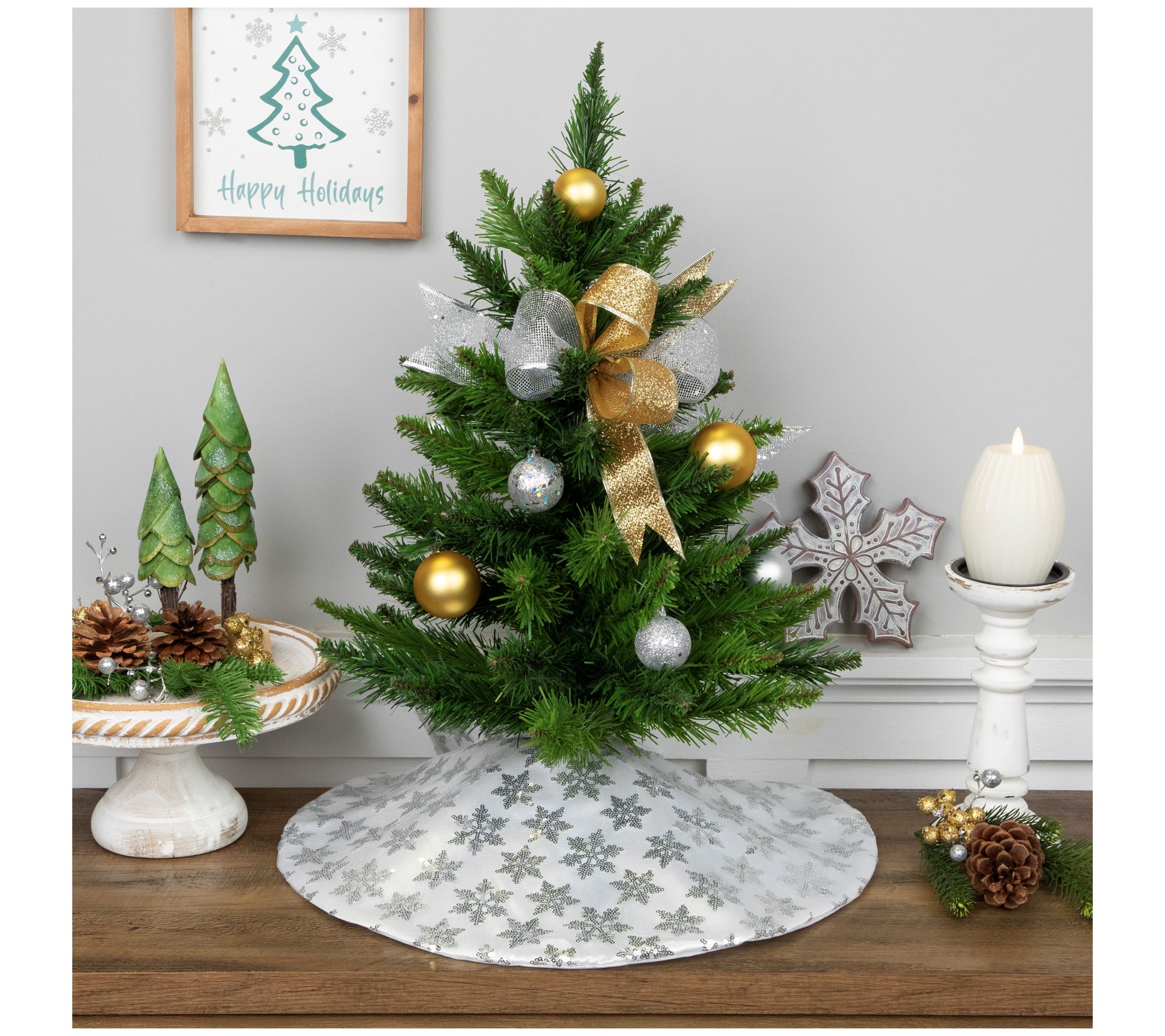 Norhtlight 20" White & Silver Sequin Snowflake Mini Tree Skirt