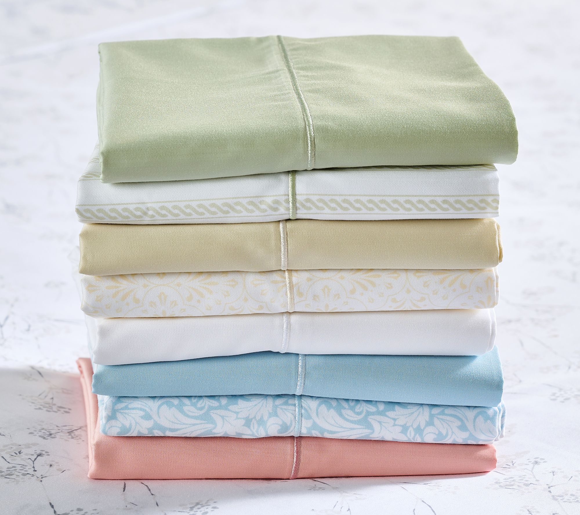 A durable cotton/TENCELTM lyocell blend creates a soft and smooth sleep experience you'll look forward to every evening (and for the occasional afternoon catnap). There's more to the moisture-wicking fabric than meets the eye -- just feel the difference in its cool-to-the-touch caress. You'll see the difference, too, in the color selection. The prints all coordinate back to a solid color so it's easy to mix and match with multiple sets (don't forget the guest room). It's enough to inspire the decorator in us all!