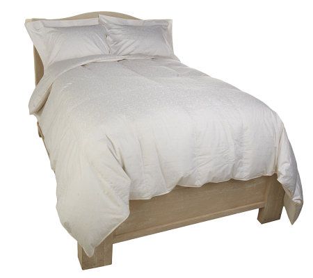 A dreamy nighttime display. Cuddle up in the tea-stained, yarn-dyed cotton fabric and natural-down fill of this cozy set. The comforter's true baffle box construction keeps the down in place while its woven jacquard design offers a high-style look for any boudoir's decor. From Northern Nights(R) Bedding.