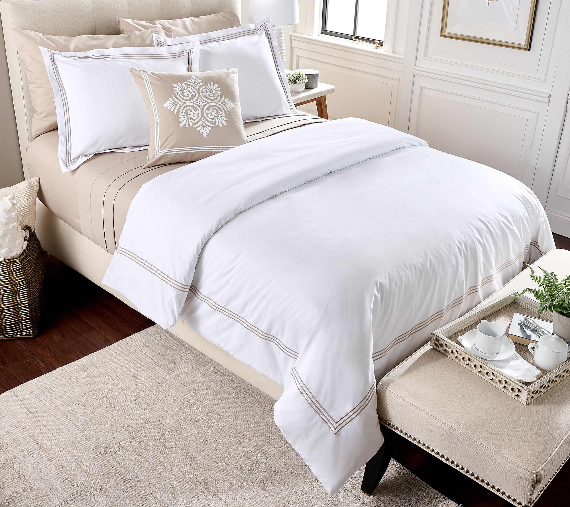 Includes flat sheet, fitted sheet, and pillowcase; additional items (shown) not included