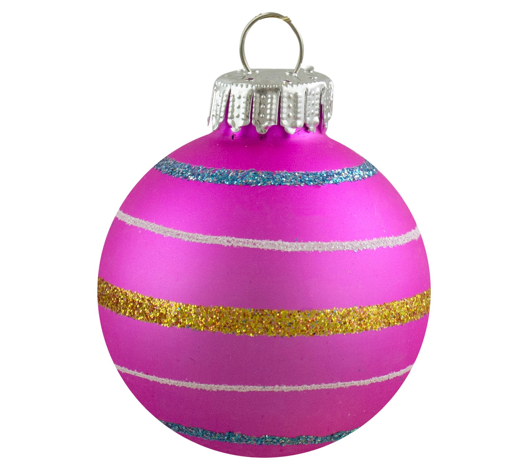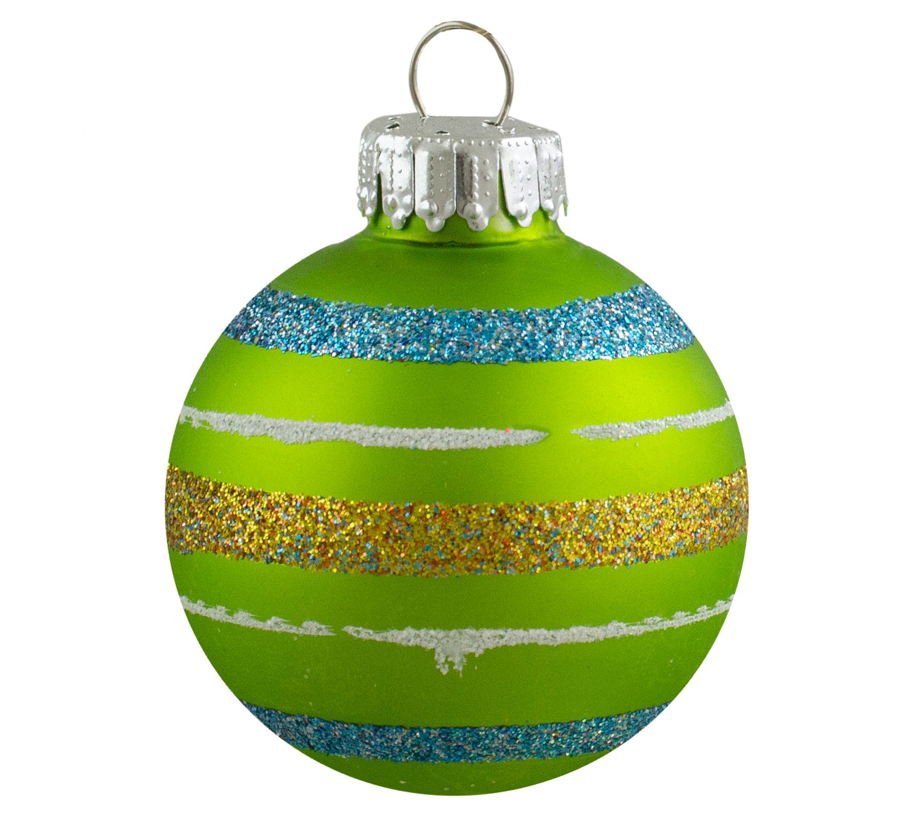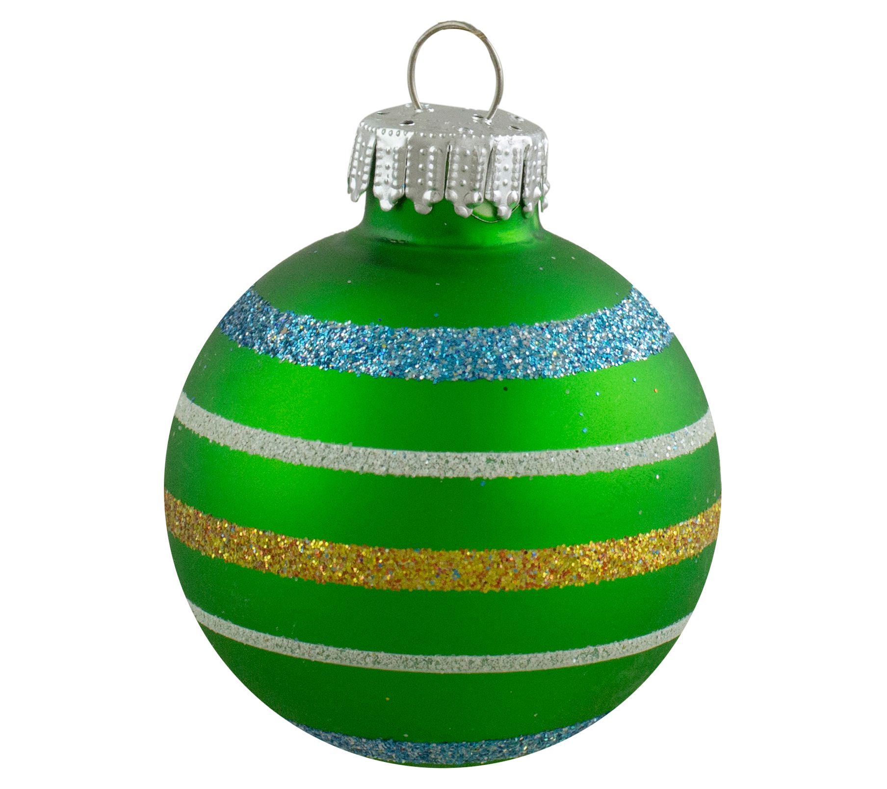 Add sparkle and shine to your holiday home with this set of 10 matte glass ornaments, featuring a lively array of bright colors, each accented with glittery stripes. From Northlight.