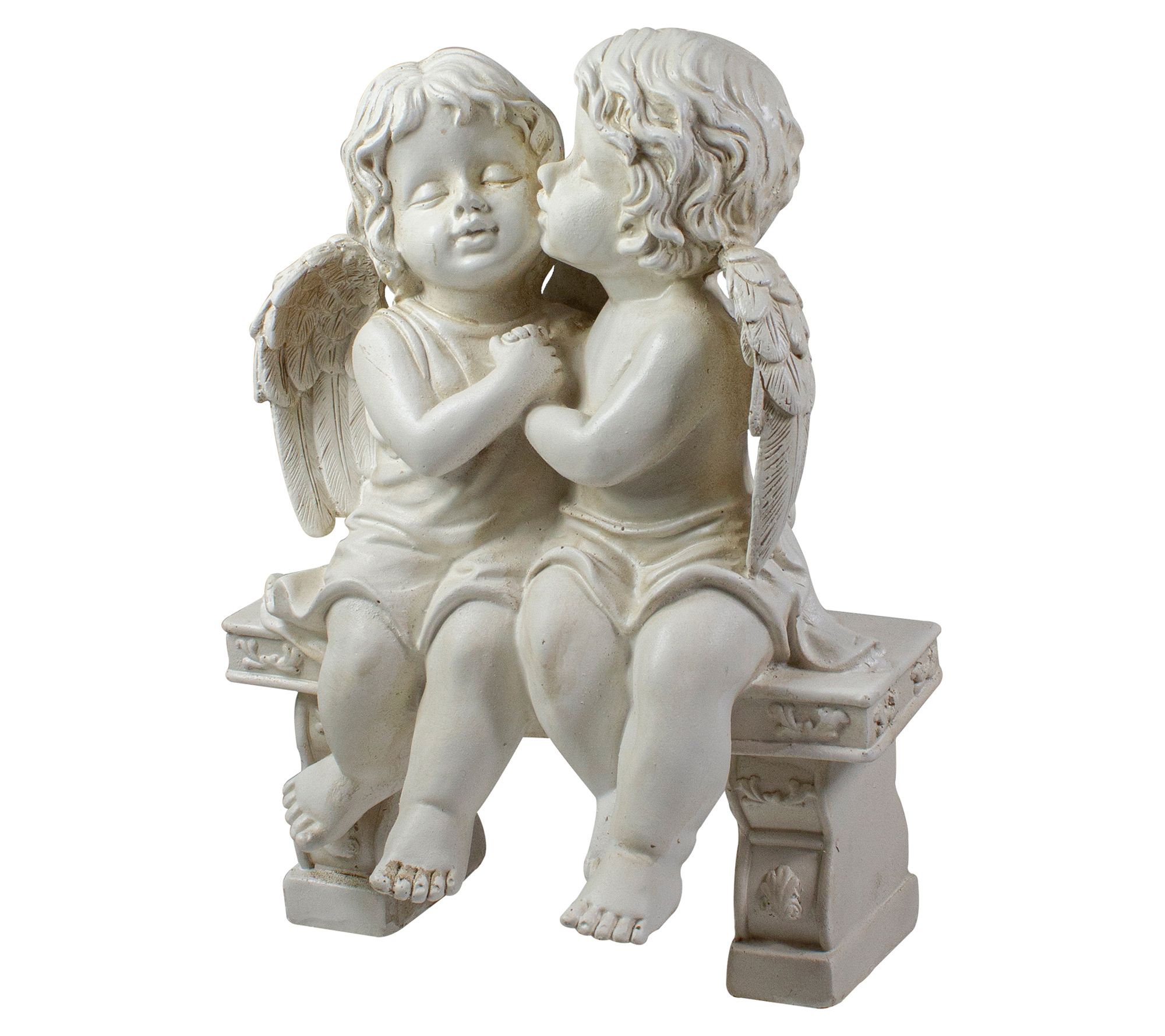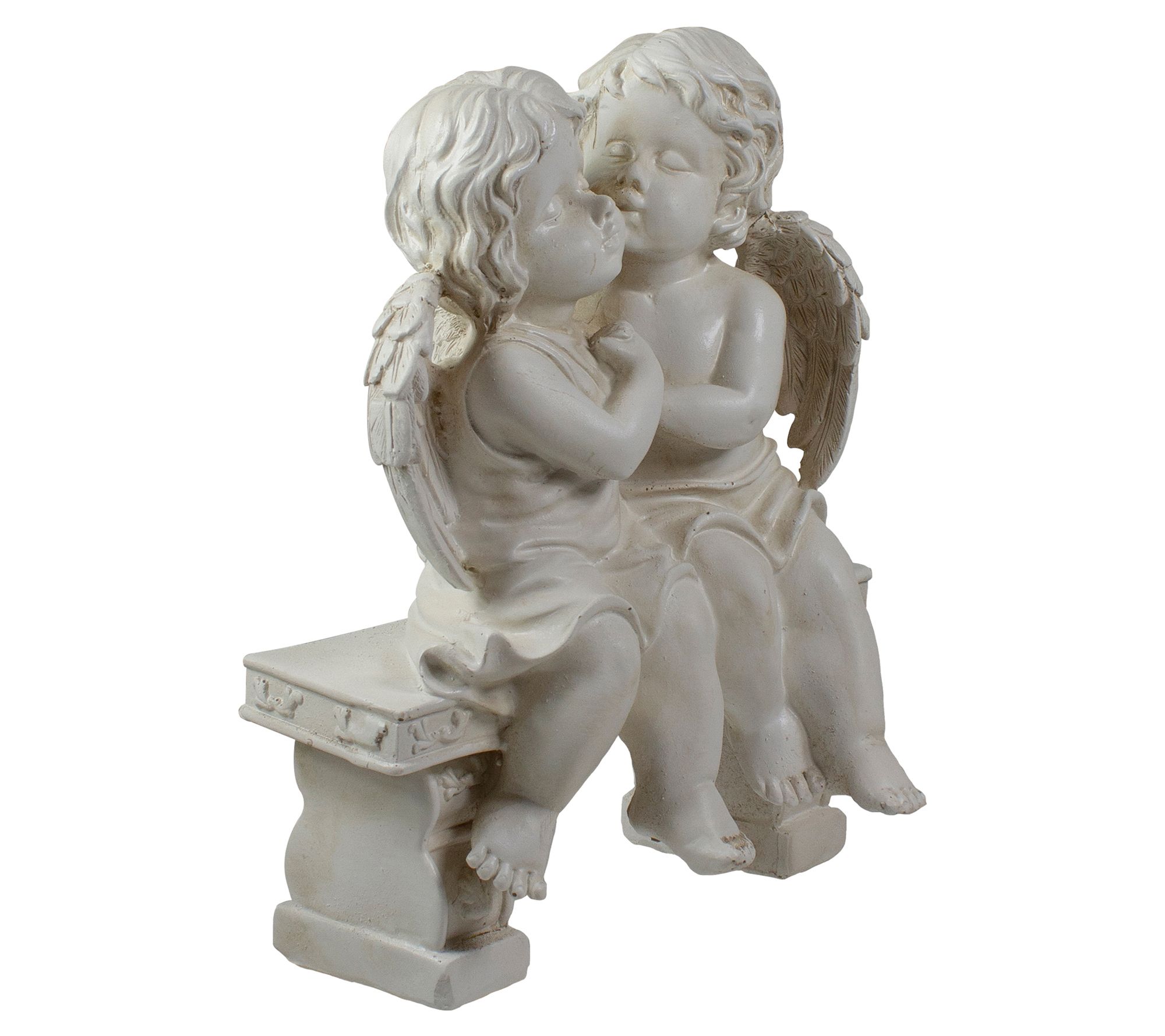 Northlight 10" Kissing Cherubs Sitting on Bench Garden Statue