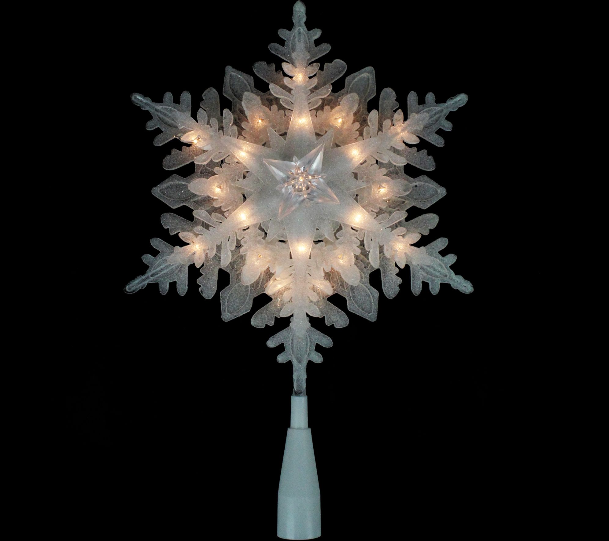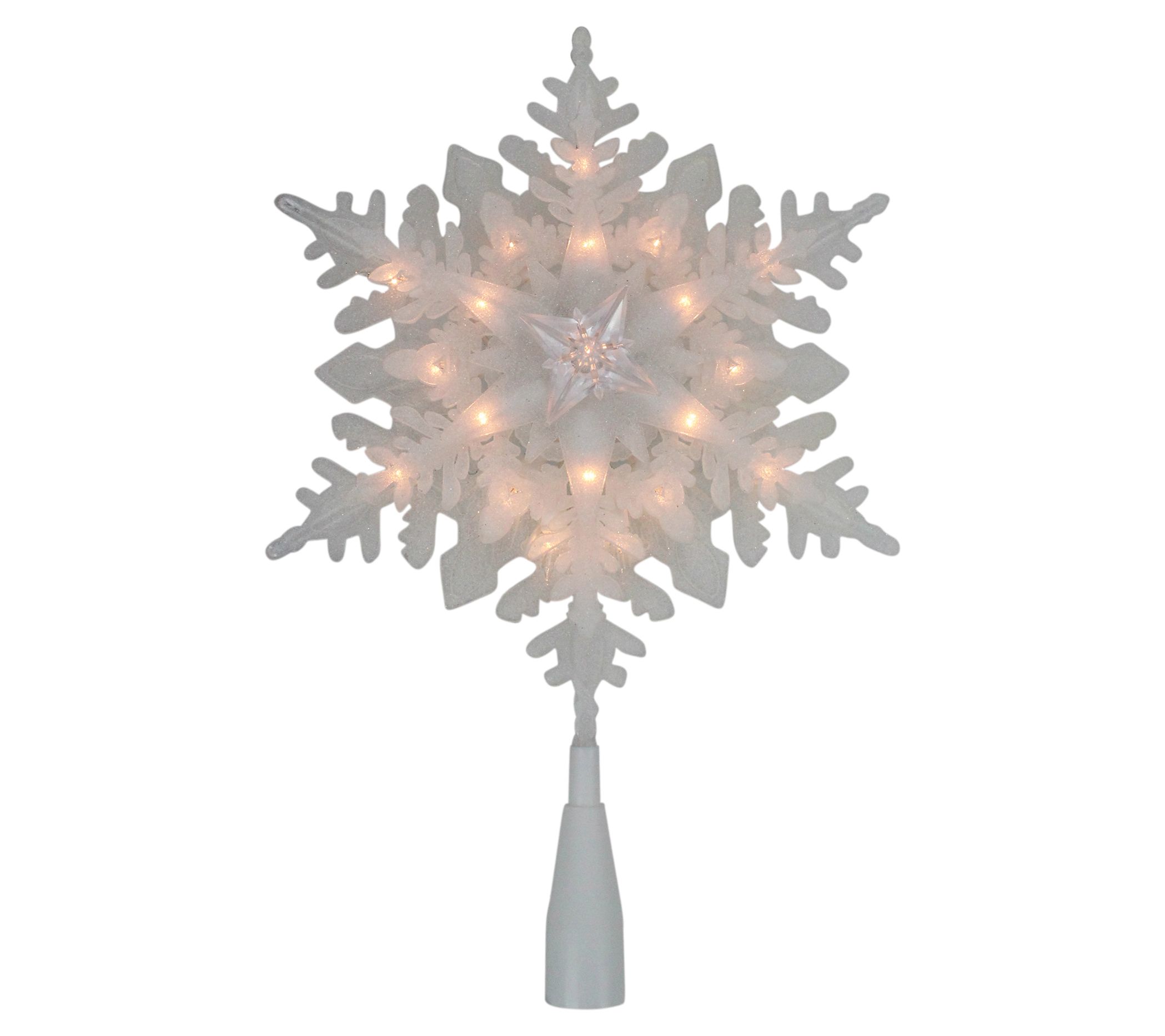 Finish your tree decorating with spectacular style courtesy of this frosted snowflake lighted topper. It adds sparkly fun and illumination to your holiday decor. From Northlight.