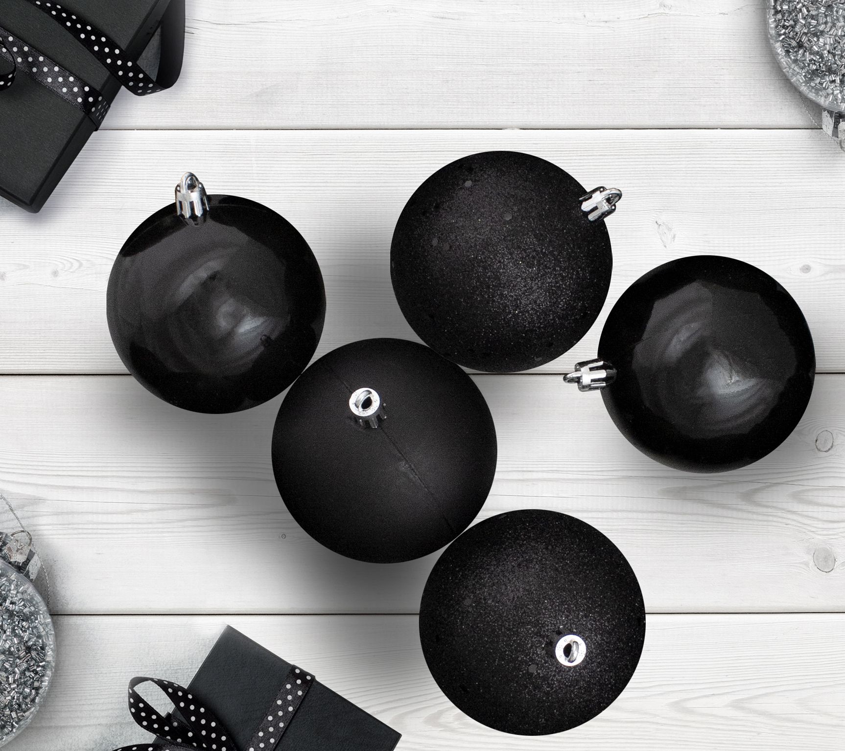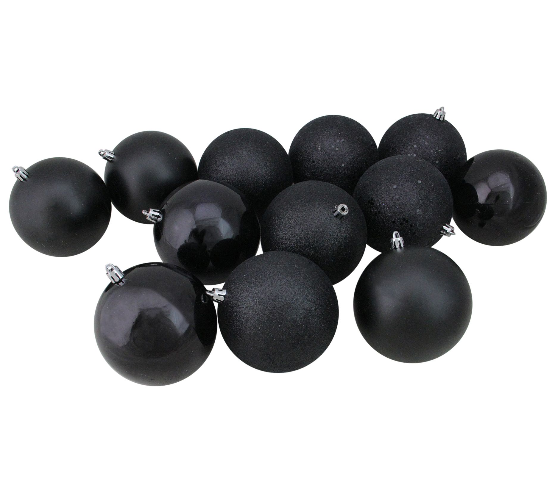 Northlight 12-ct Black Shatterproof 4-Finish Ball Ornaments 4"