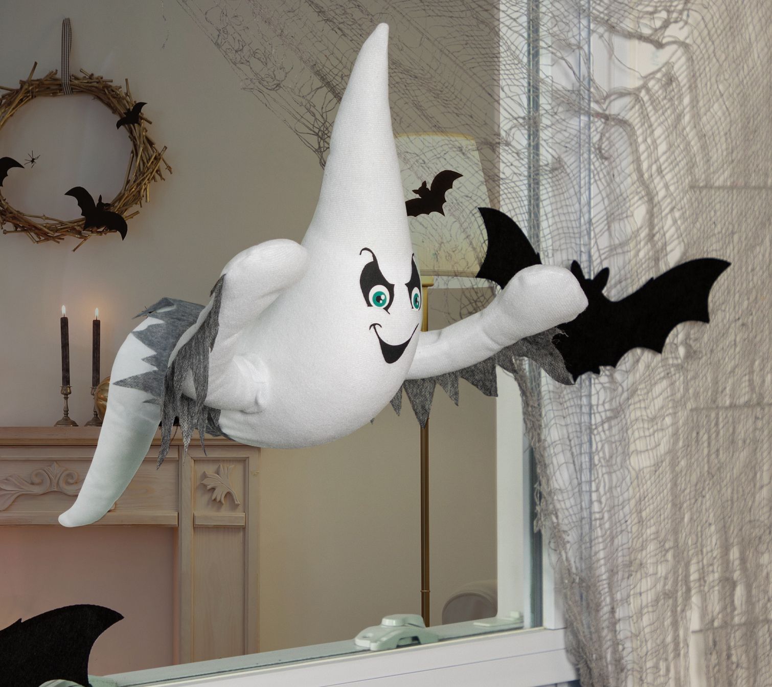 When it's time to give your windows a spine-tingling transformation for Halloween, this 3-D ghoulish ghost brings a playful fright to any display. Lightweight and easy to install, its clever design, featuring a tail that appears to phase through the glass, creates a striking scene both inside and out. From Northlight.