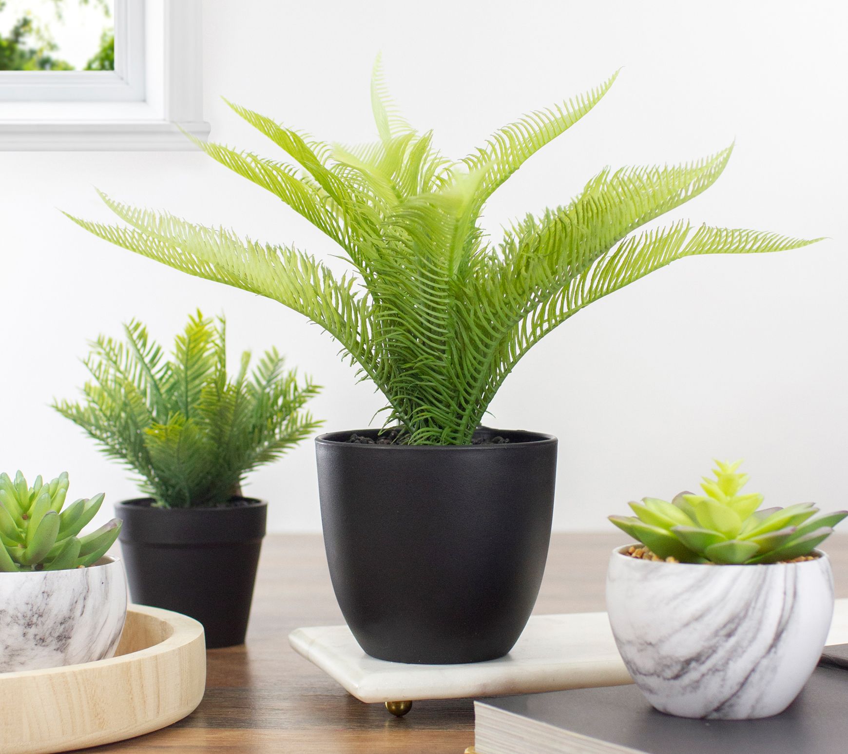 Don't let your brown thumb hold you back -- show off your love of plants with this artificial pinus arrangement! This faux plant is held in a black pot with faux dirt and stone for a realistic look. Easy to maintain, this artificial plant is perfect for your home or office. From Northlight.