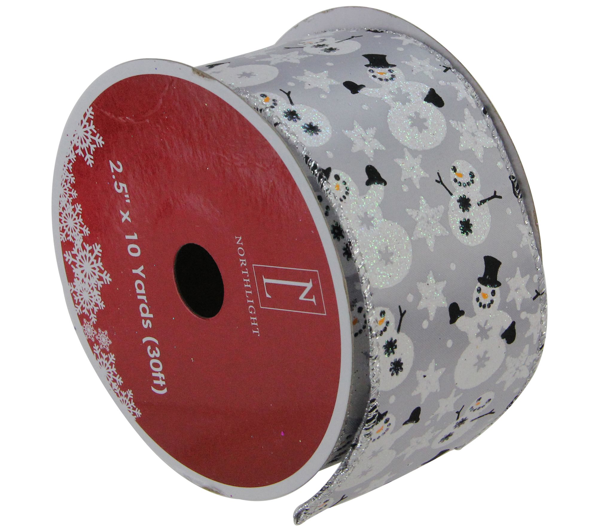 Bring a flurry of fun to a mantel, wrapped gift, or tree when you have this 12-pack of ribbon, featuring smiling snowmen that sparkle in the light. From Northlight.