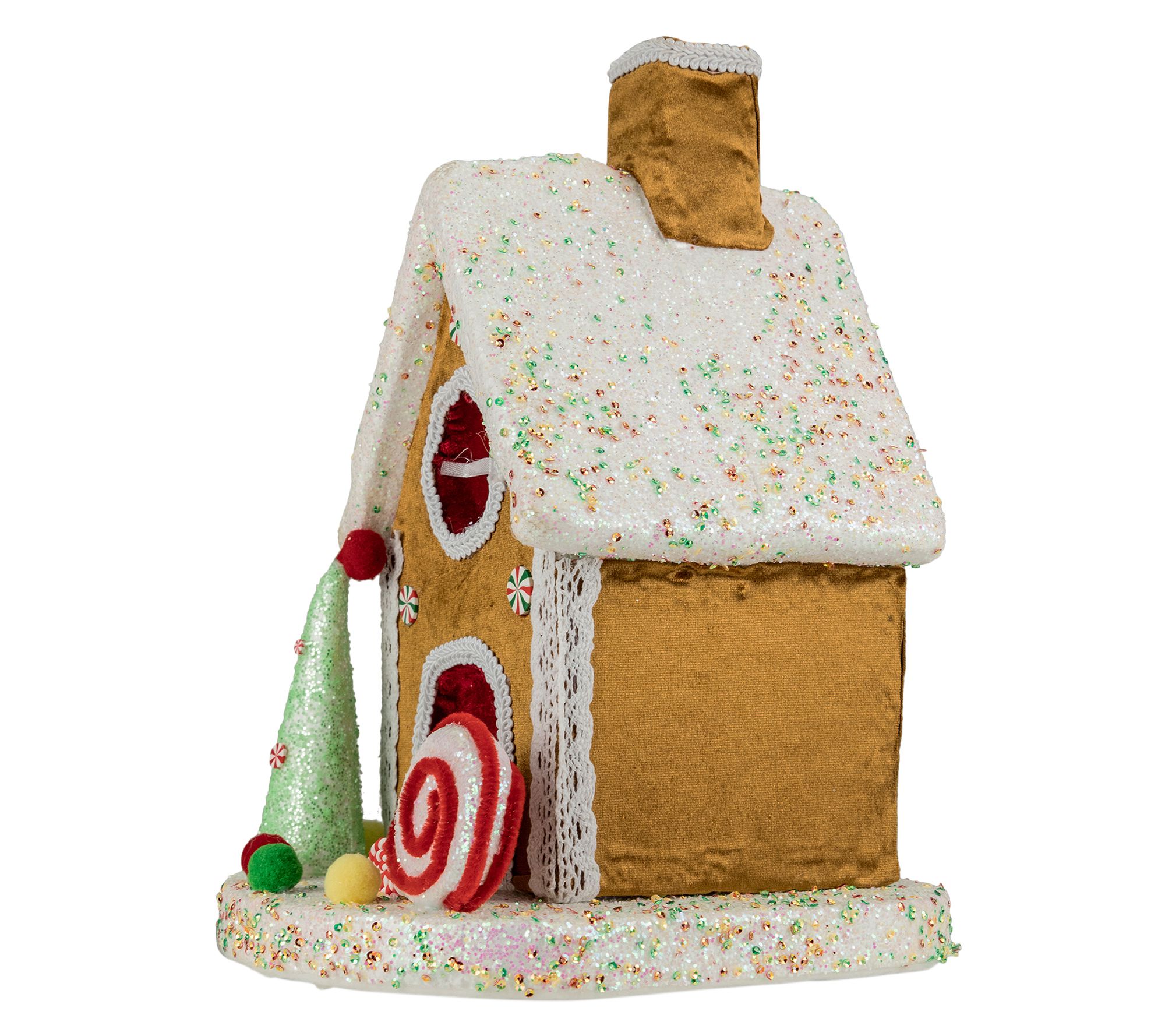Invite the festive spirit into your home with a gingerbread candy house that promises to be the center of attention in your holiday decor. Adorned with colorful sequins and glitter, this delightful piece offers a vibrant sparkle that captures the magic of the season. Perfect for displaying on mantels, tabletops, or as part of a charming Christmas village. The warm, whimsical vibes this decoration exudes are bound to enchant guests and bring a taste of holiday cheer to your living space. From Northlight.