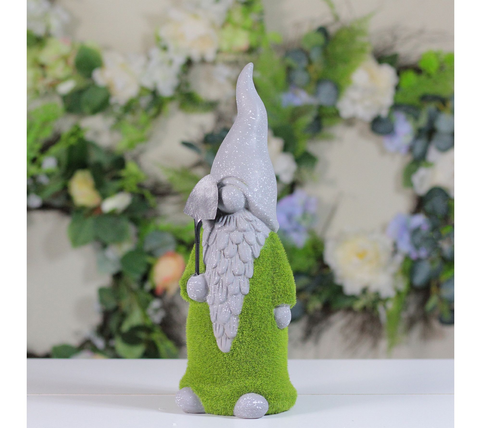 Northlight 14" Faux Moss Gnome with Shovel Garden Statue