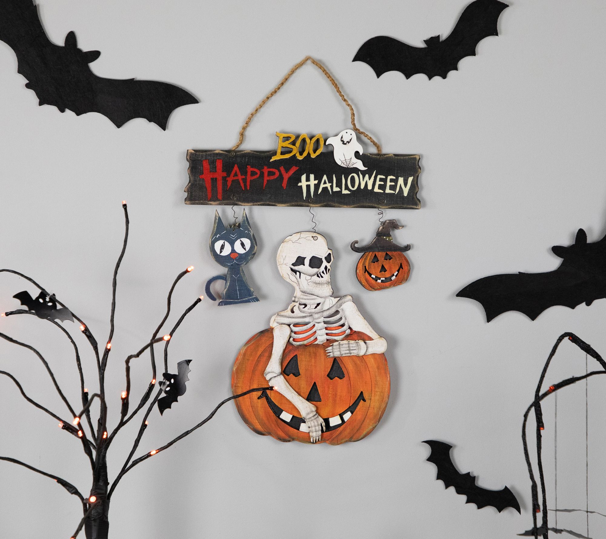 • Includes one 14.5" Skeleton and Cat Happy Halloween Wall Sign