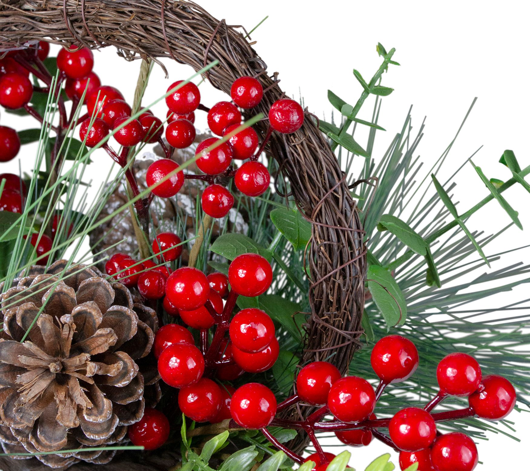 Northlight 15" Eucalyptus Pine and Berry Grapevine Basket