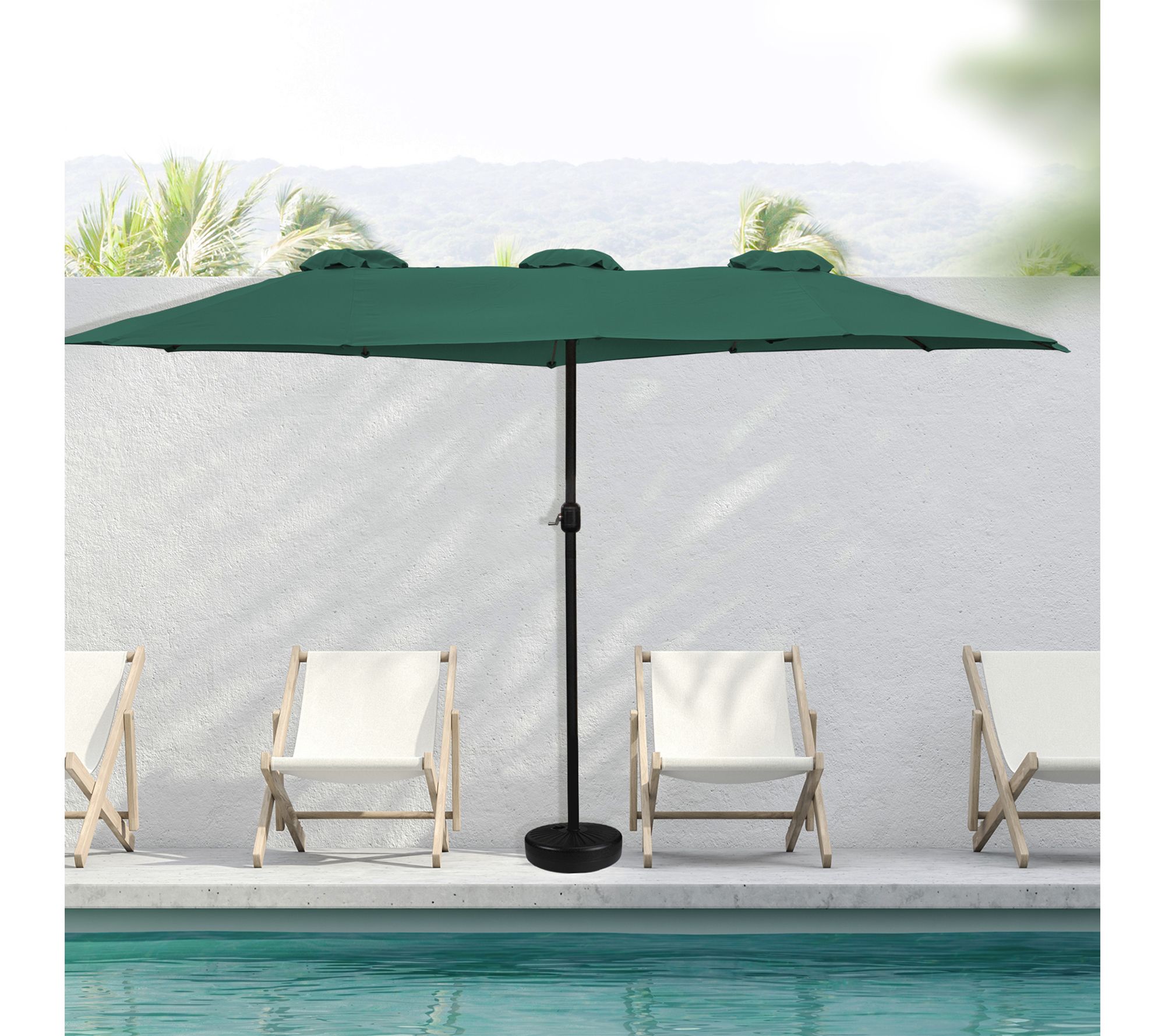 Create a shaded oasis in your backyard or on your patio with this 15' patio market umbrella. The spacious canopy offers ample coverage for outdoor meals or lounging, while the easy-to-use hand crank lets you set up shade in moments, so you can relax with friends and family throughout the day. From Northlight.