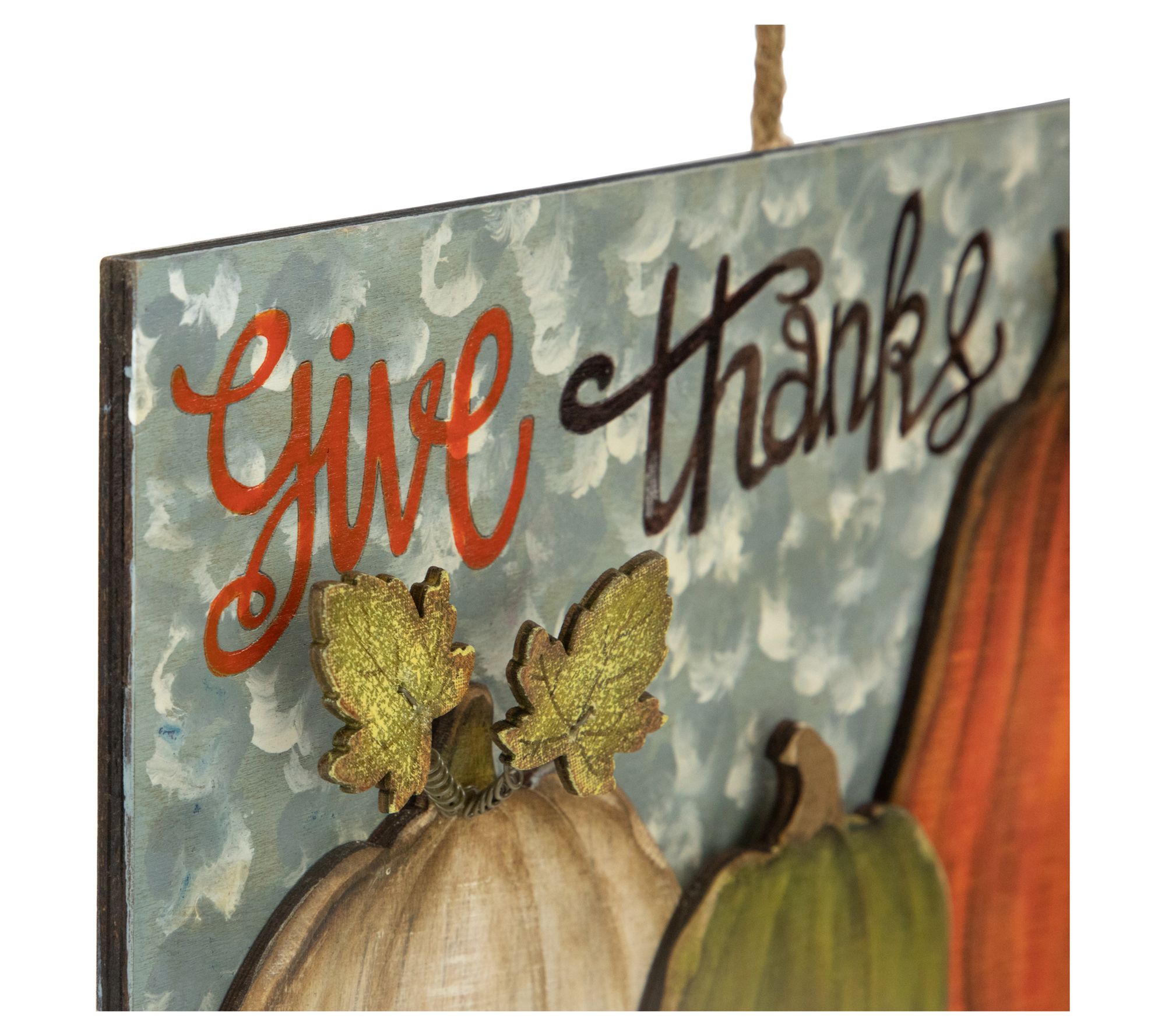 Welcome friends and family into your home with this charming Give Thanks pumpkin wall sign, warmly capturing the spirit of fall. Vibrant colors and festive detailing bring a cheerful touch to doors, walls, or even over the mantle, setting the scene for cozy gatherings and conversations. From Northlight.