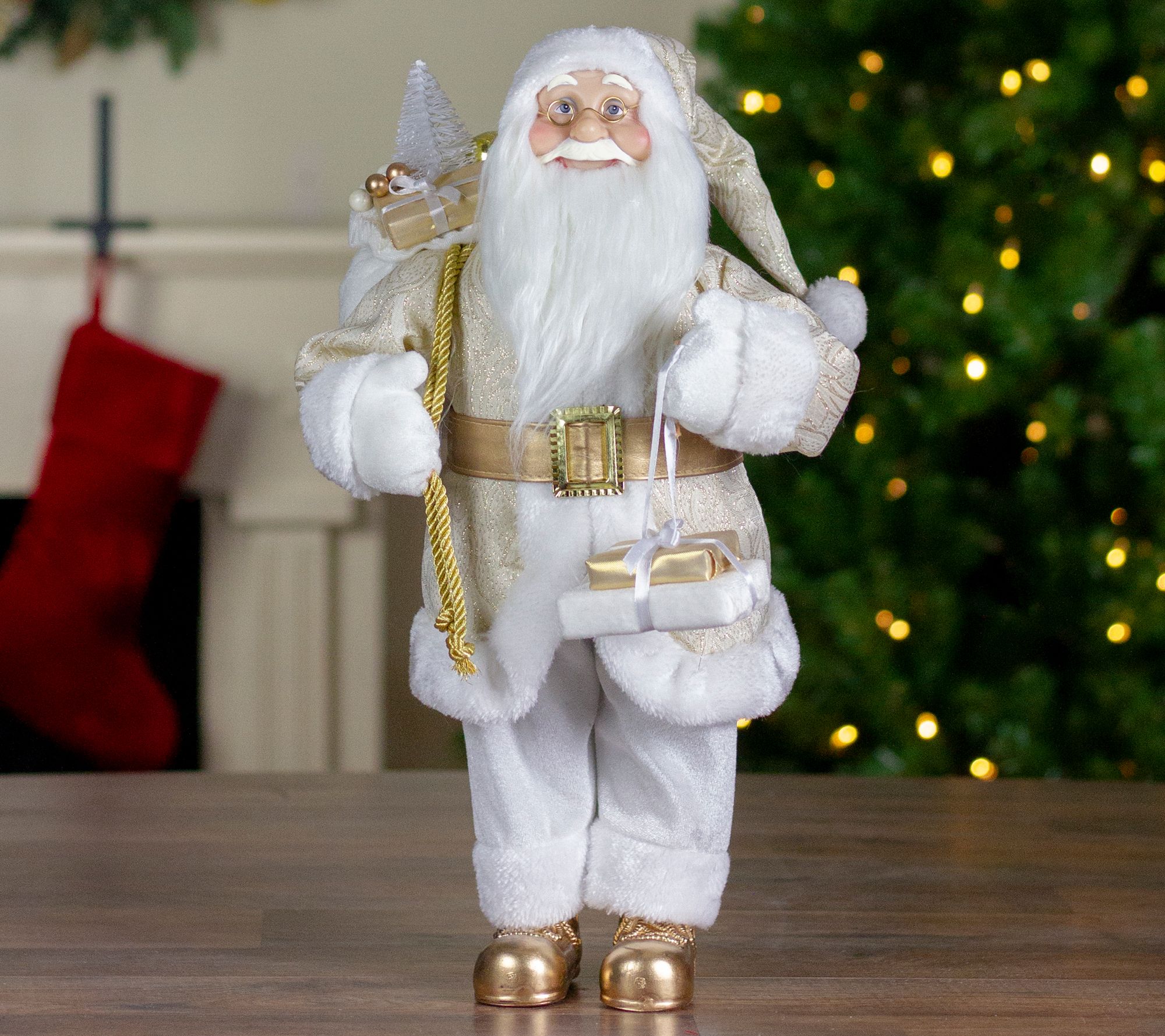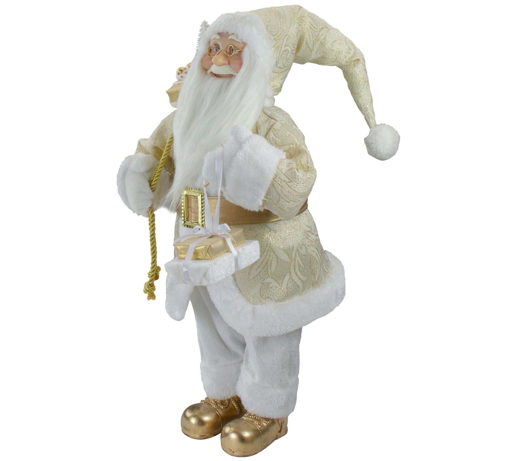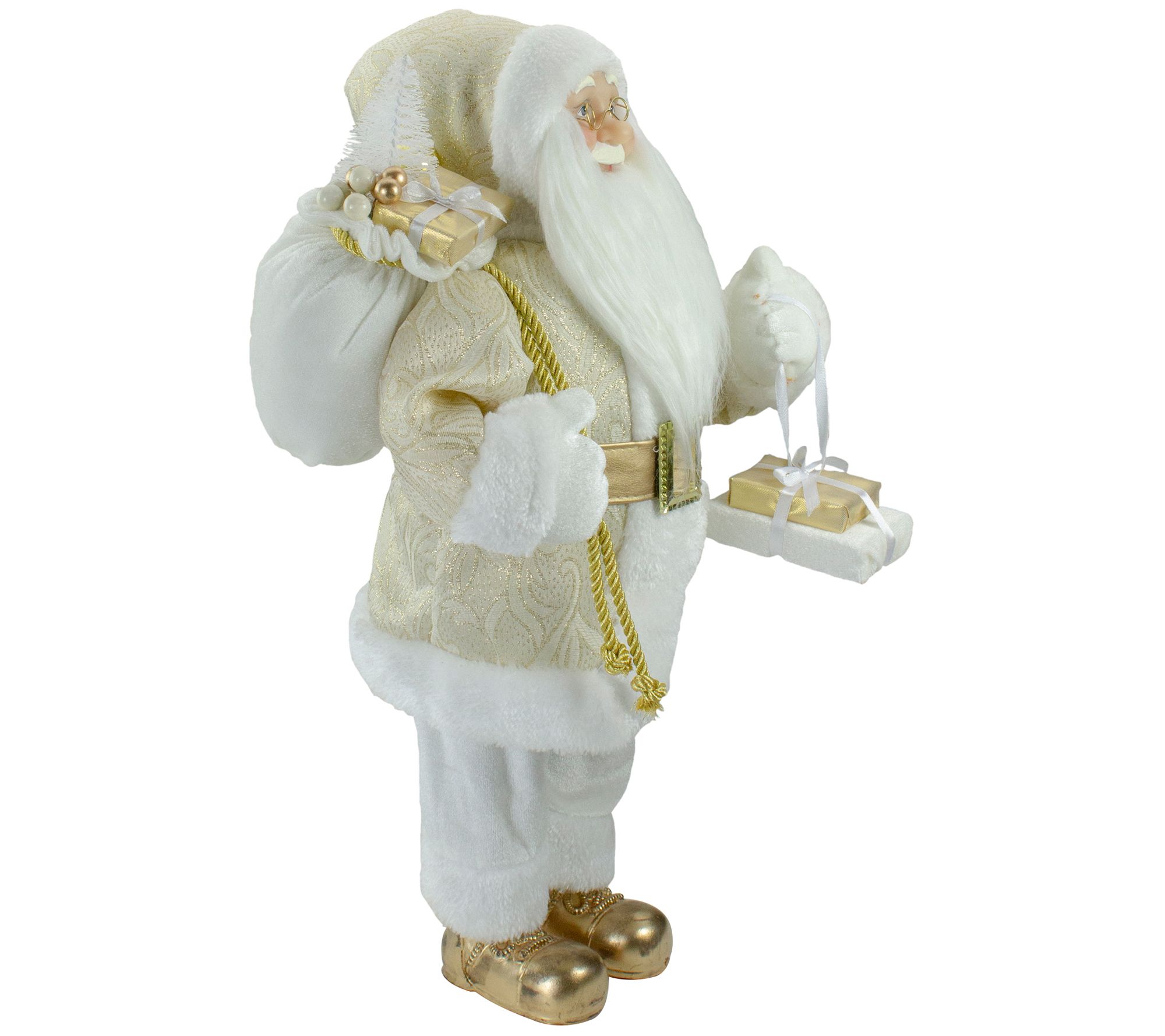 Northlight 18" Gold & White Standing Santa Figue w/ Presents