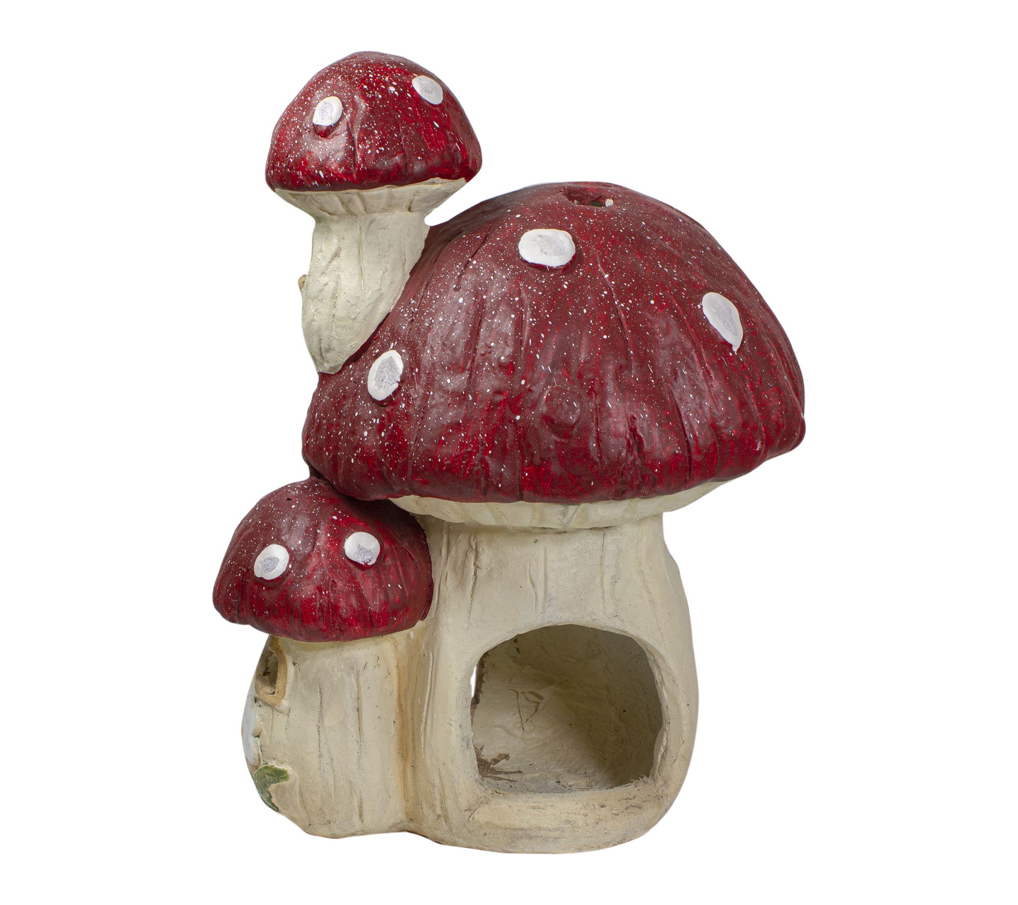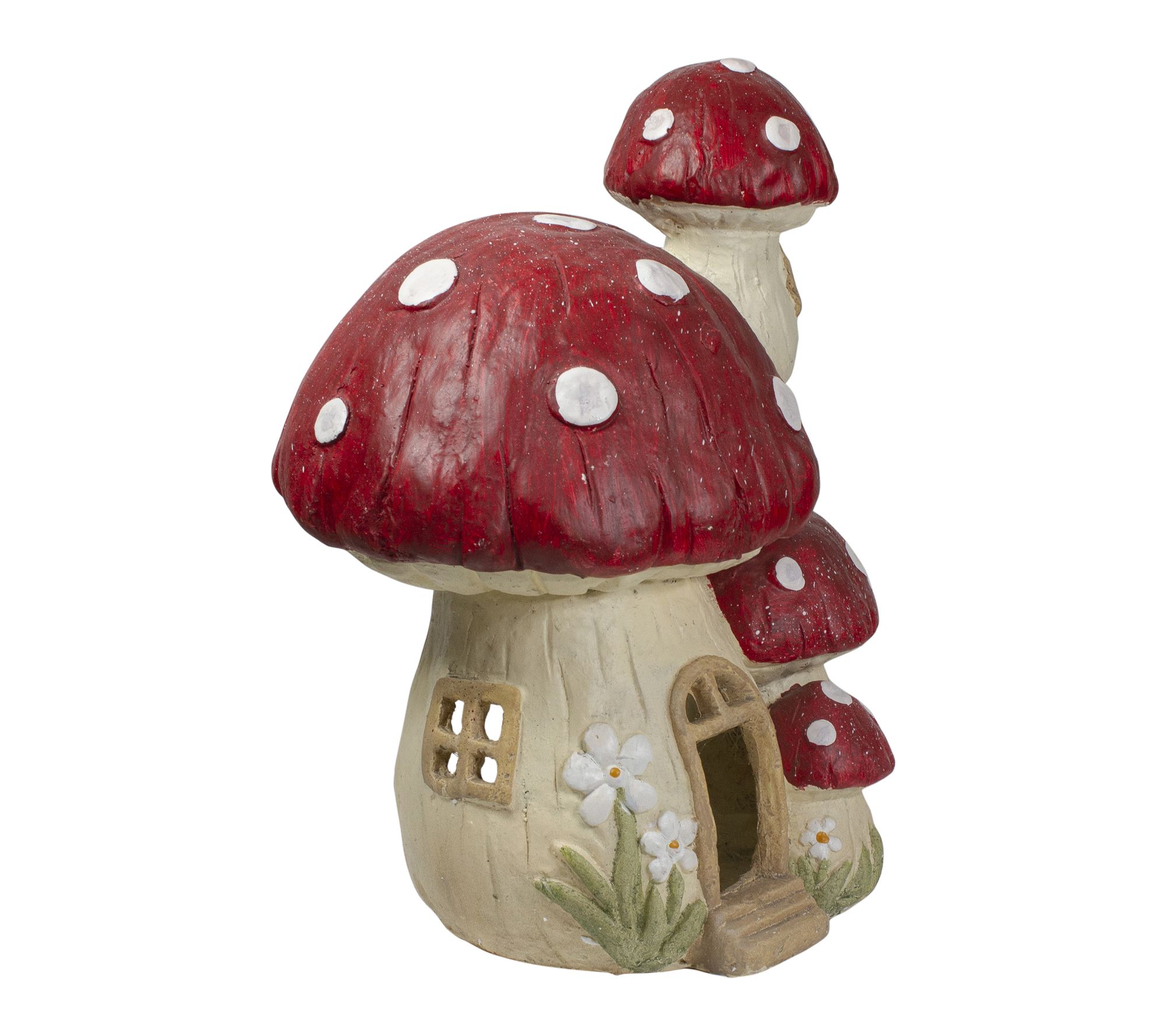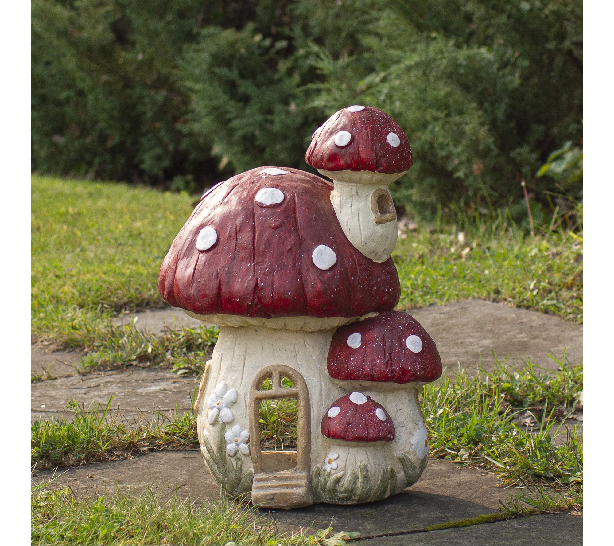 Add a touch of whimsy to your outdoor space with this mushroom house garden statue, featuring a bright red cap dotted with white and surrounded by tiny daisies and stairs leading to a charming faux door. Whether tucked among your flowers or displayed on the patio, this garden accessory sparks imagination and brings playful storybook charm to your lawn. From Northlight.