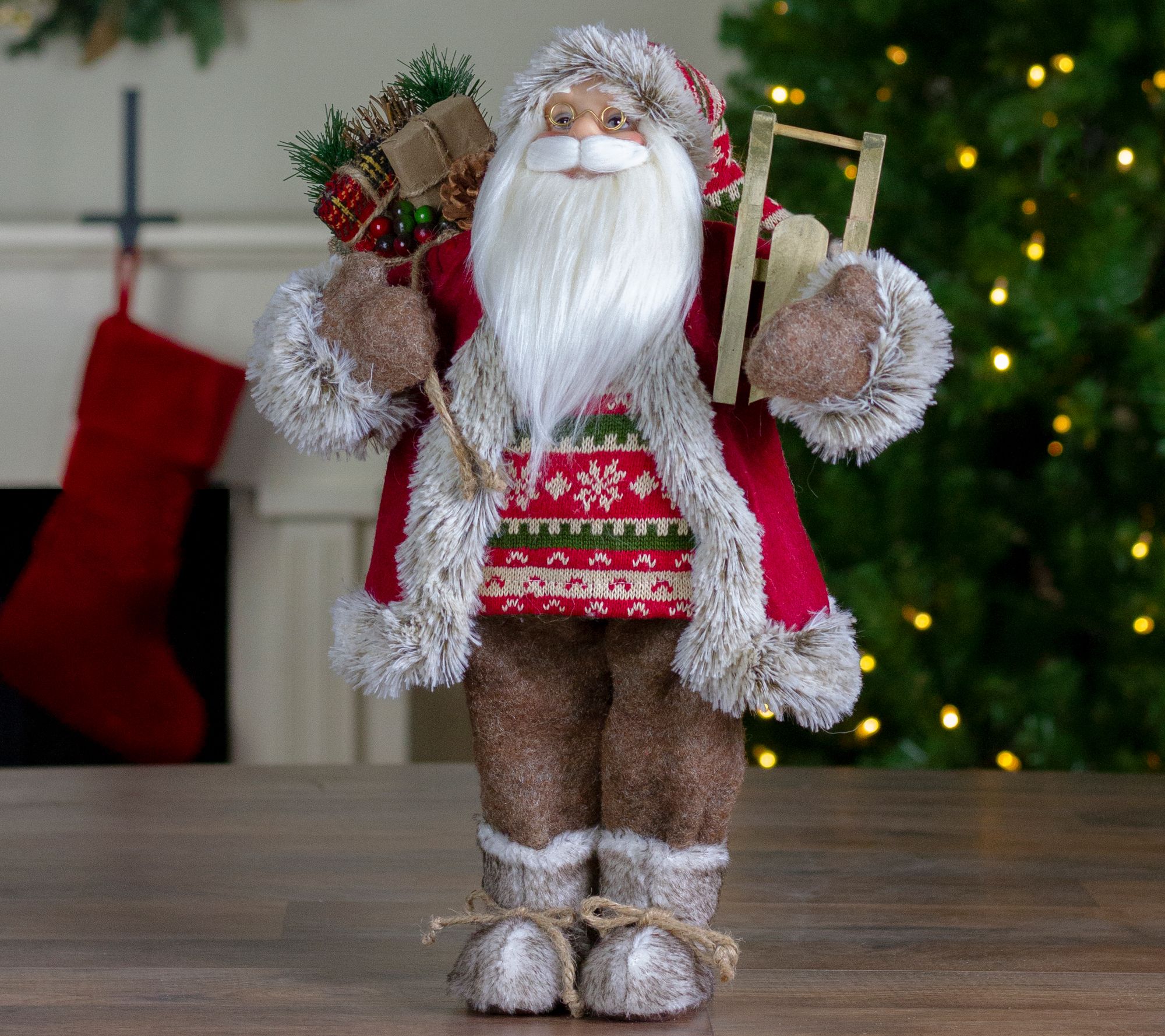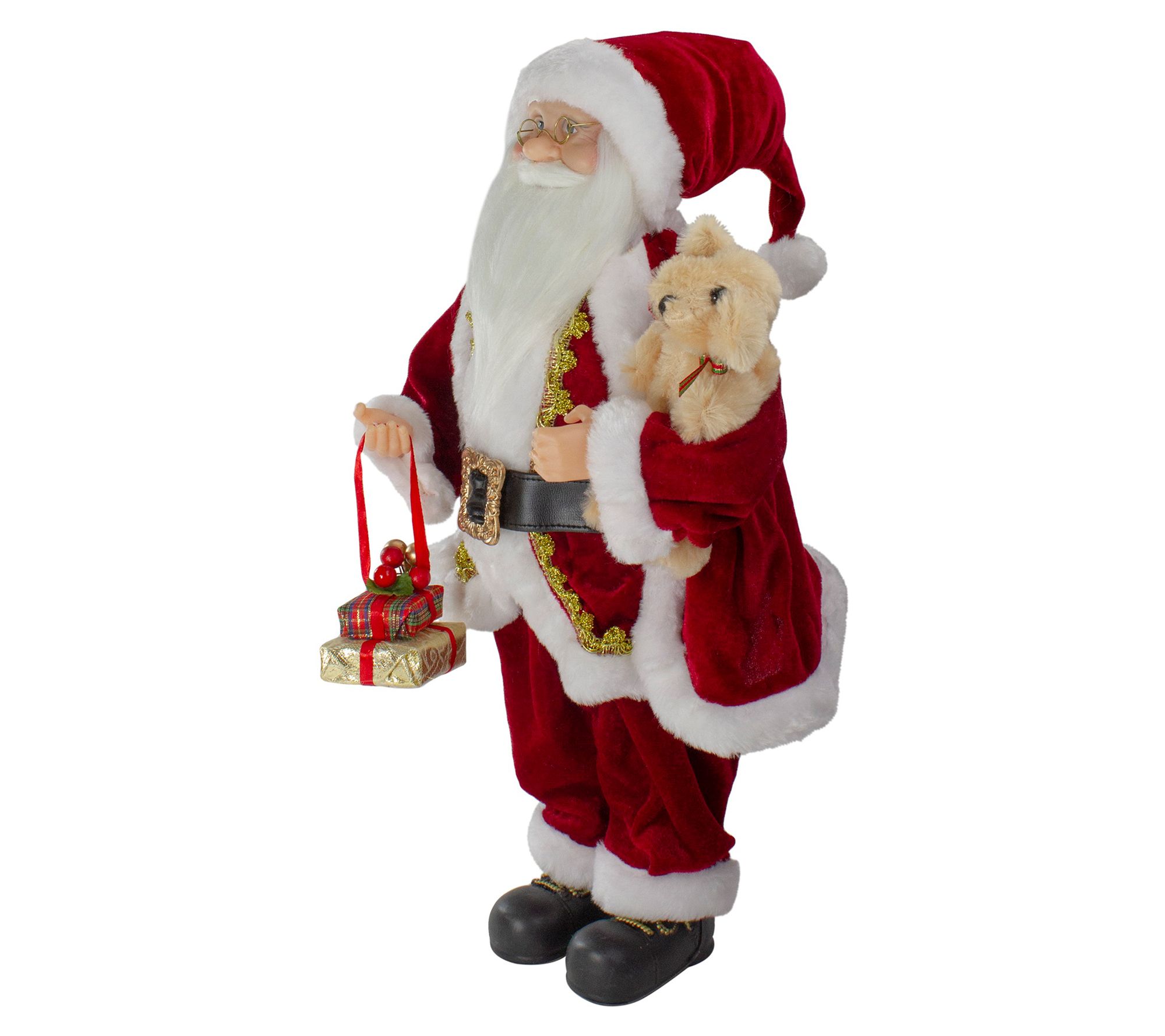 A festive accent for your tabletop or mantle, this free-standing Santa Claus (carrying presents and a stuffed bear!) is sure to delight you and your loved ones year after year. From Northlight.