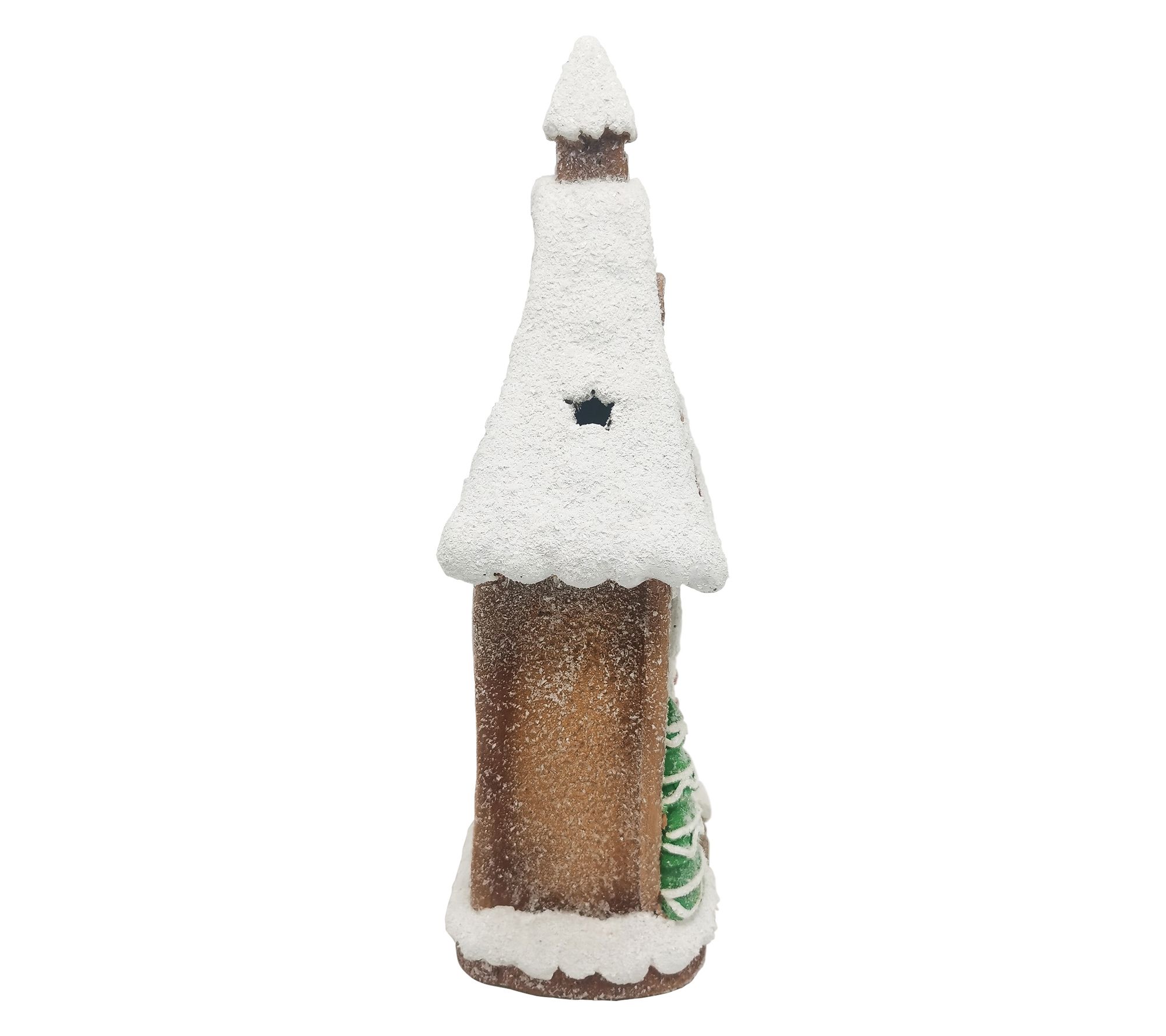 Transform your holiday space into a cozy winter wonderland with this delightful gingerbread house. Its charming cottage design paired with candy cane and icing details captures the essence of festive cheer, while the warm LED light casts a soothing glow through whimsical star window cutouts. Perfect for mantels or tabletops, it brings a sprinkle of magic and the spirit of the season to any room, enchanting guests of all ages. From Northlight.