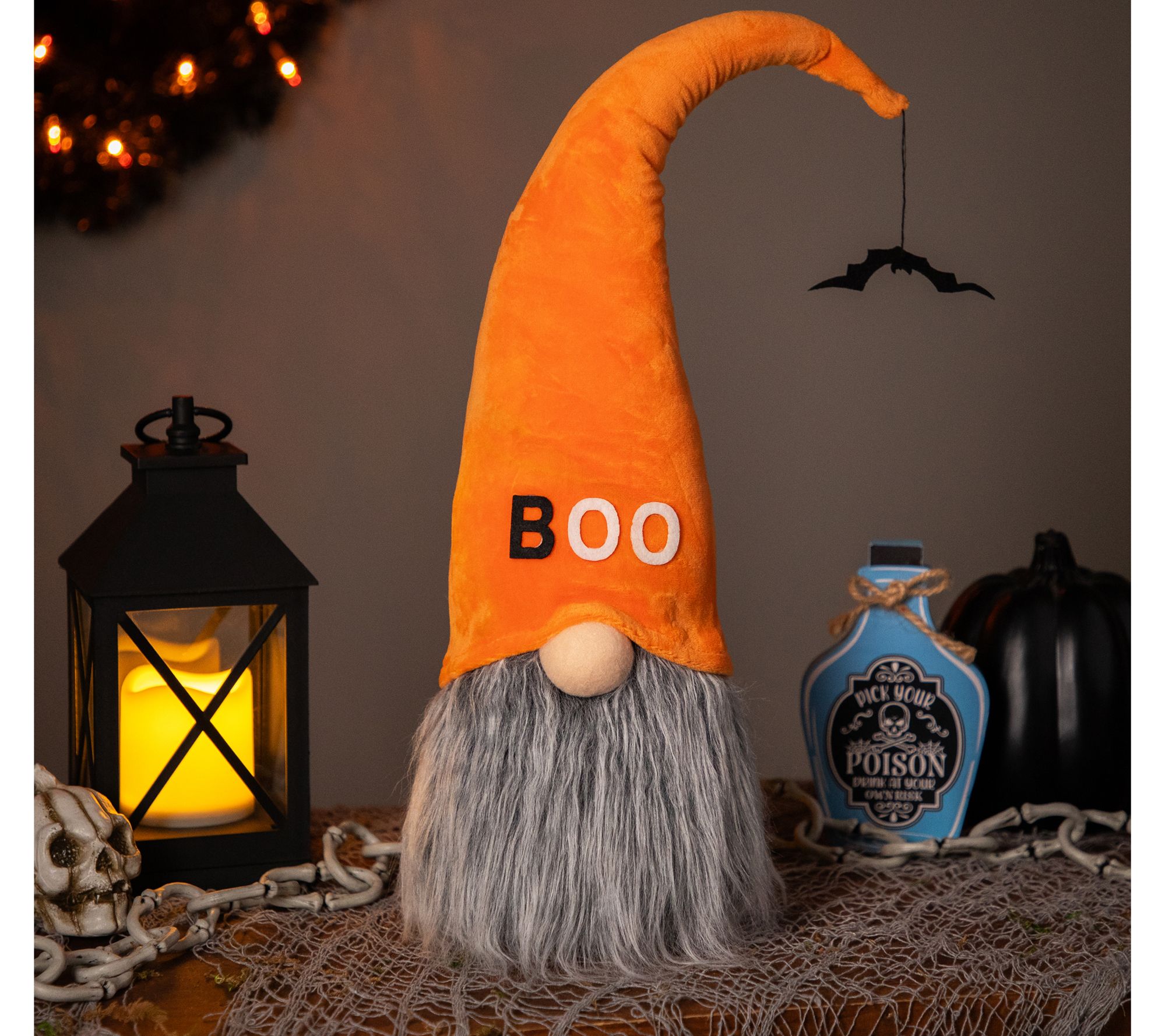 Get ready to add spooktacular charm to your Halloween decor with this sweet gnome who's wearing an orange hat accented by a playful message and a cute little bat. From Northlight.