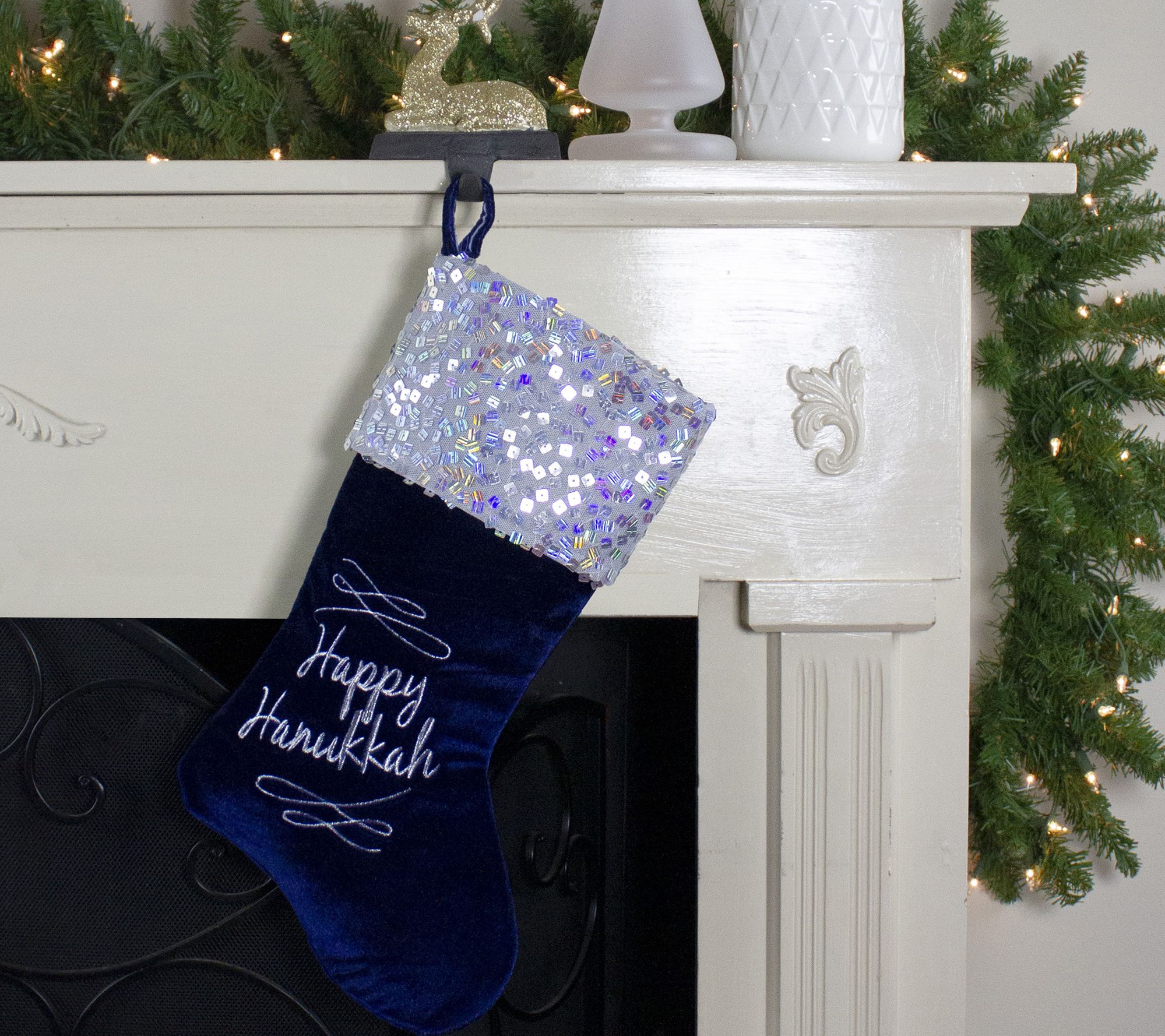 Dress up your fireplace this holiday season with this shimmery Hanukkah stocking. Embellished with decorative embroidery and silver sequins, it lends festive charm to any home. From Northlight.