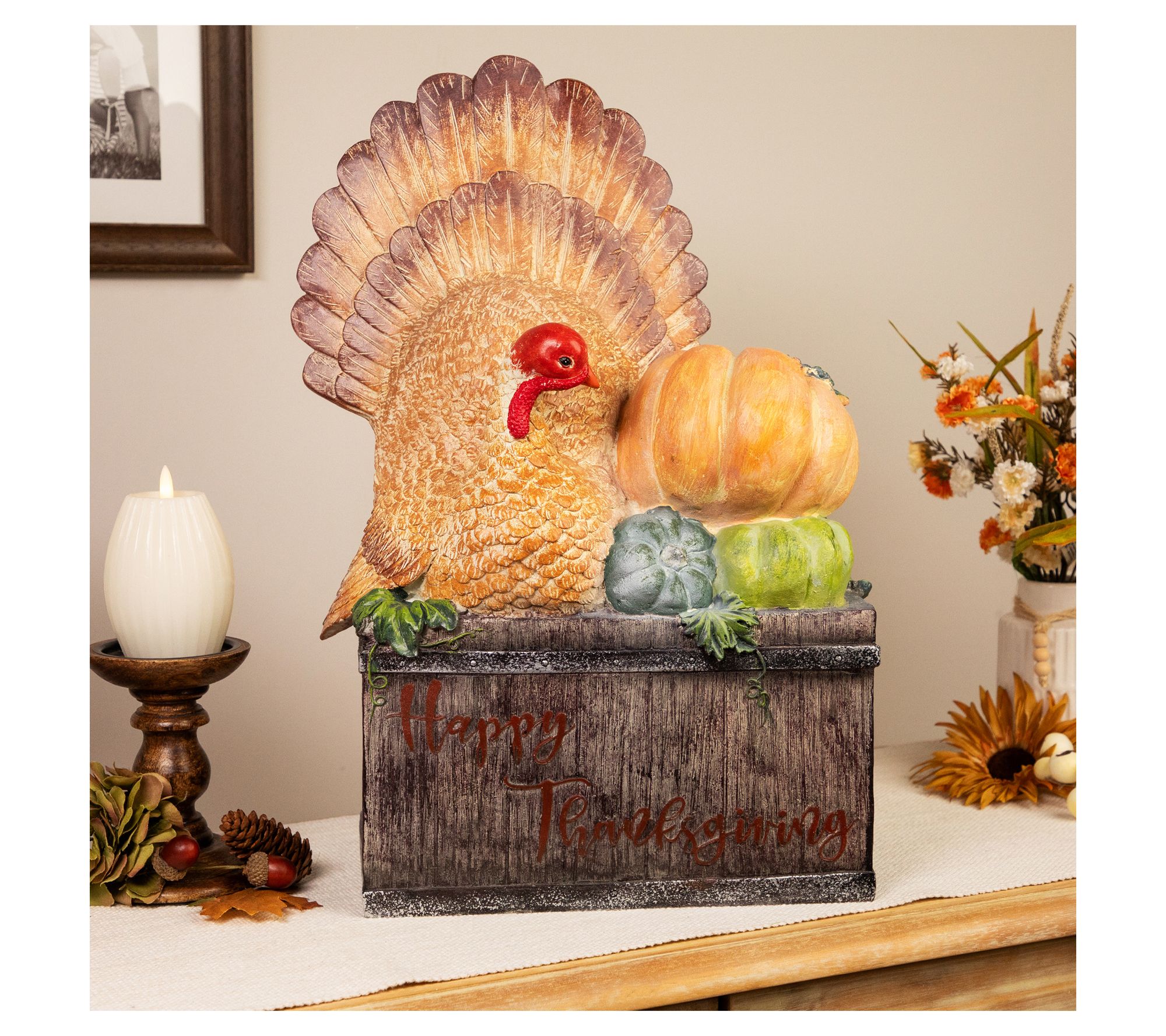 • Includes one 20.25" turkey and pumpkins Happy Thanksgiving decor
