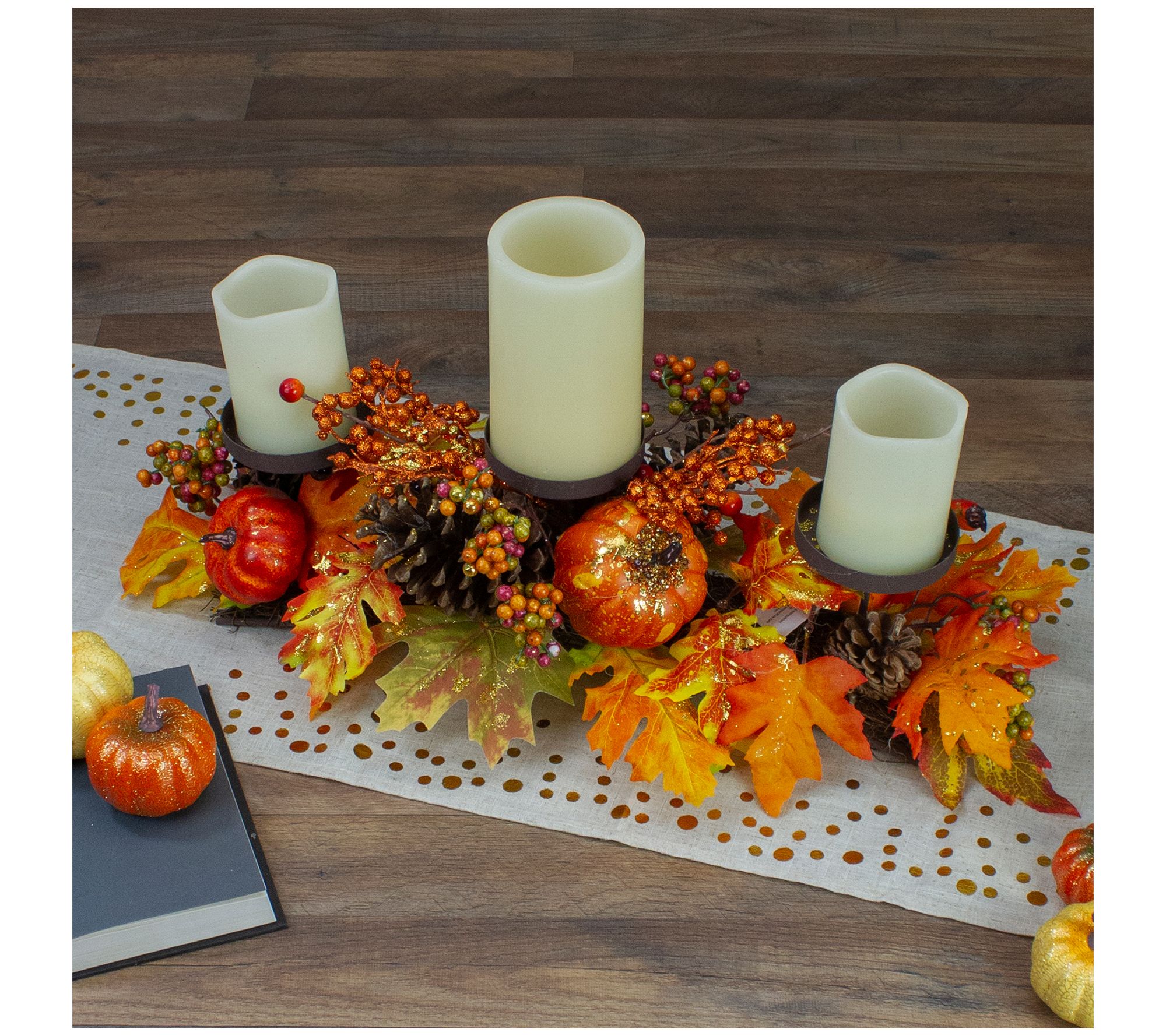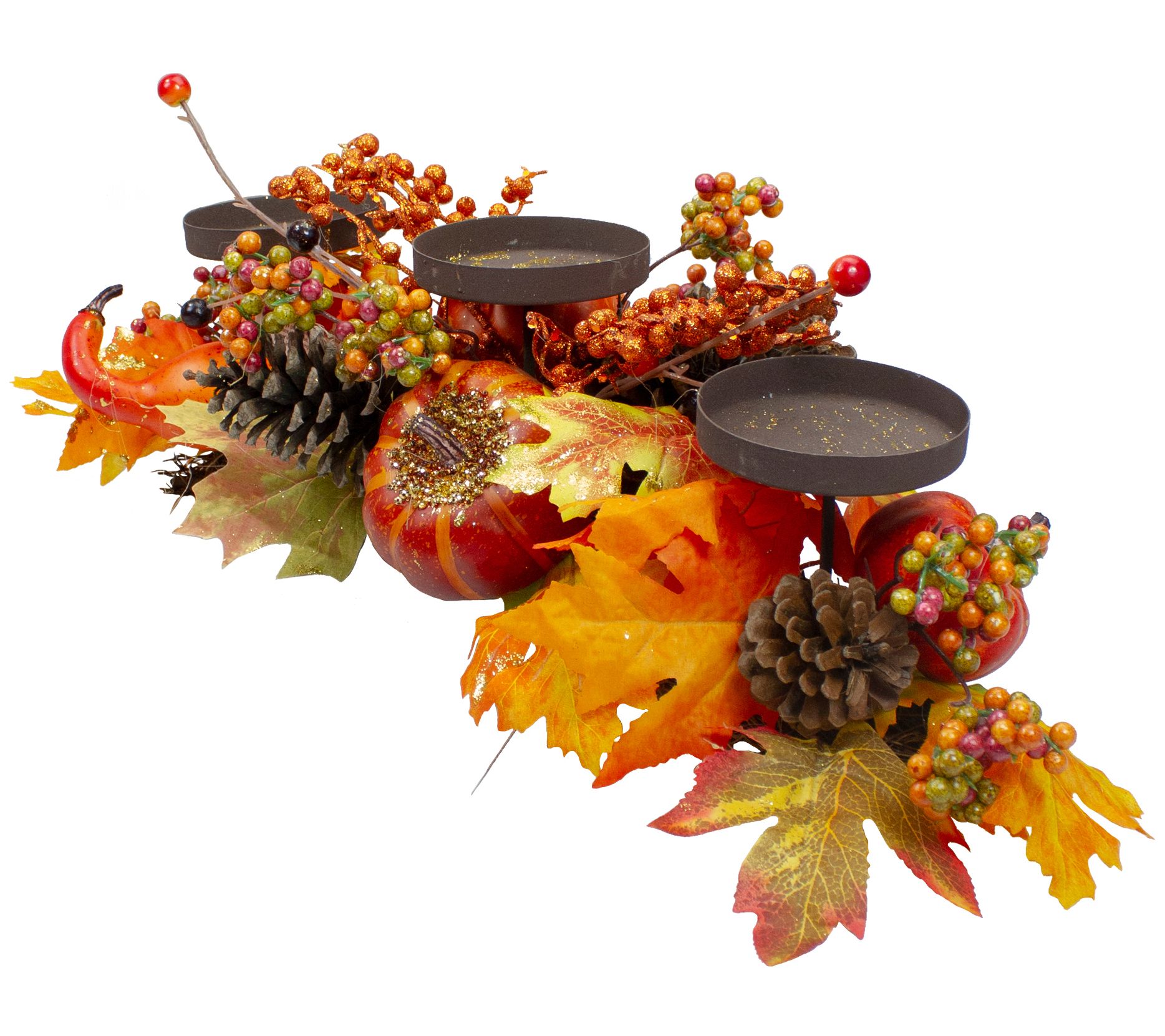 Northlight 21" Fall Harvest Leaves & Pumpkins Cndle Holder