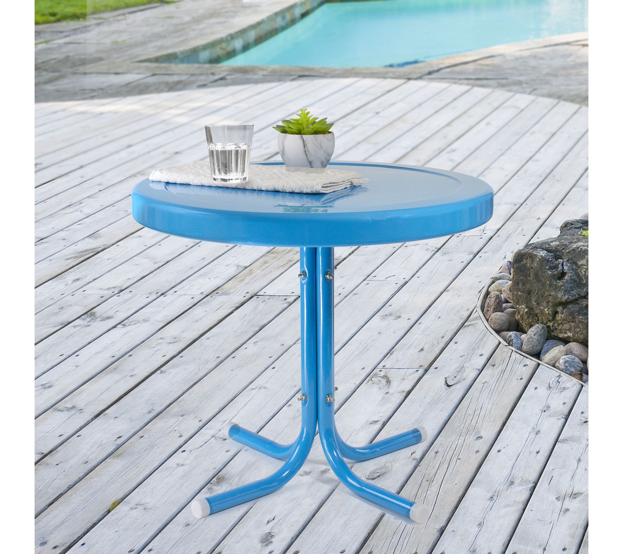 Brighten up your outdoor gatherings with this retro steel tulip side table, designed to bring a splash of turquoise blue and vintage charm to your patio, garden, or balcony. The smooth, round tabletop is ideal for serving drinks, snacks, or displaying your favorite decorative accents, while the sturdy steel build resists rust and corrosion for seasons of enjoyment. From Northlight.