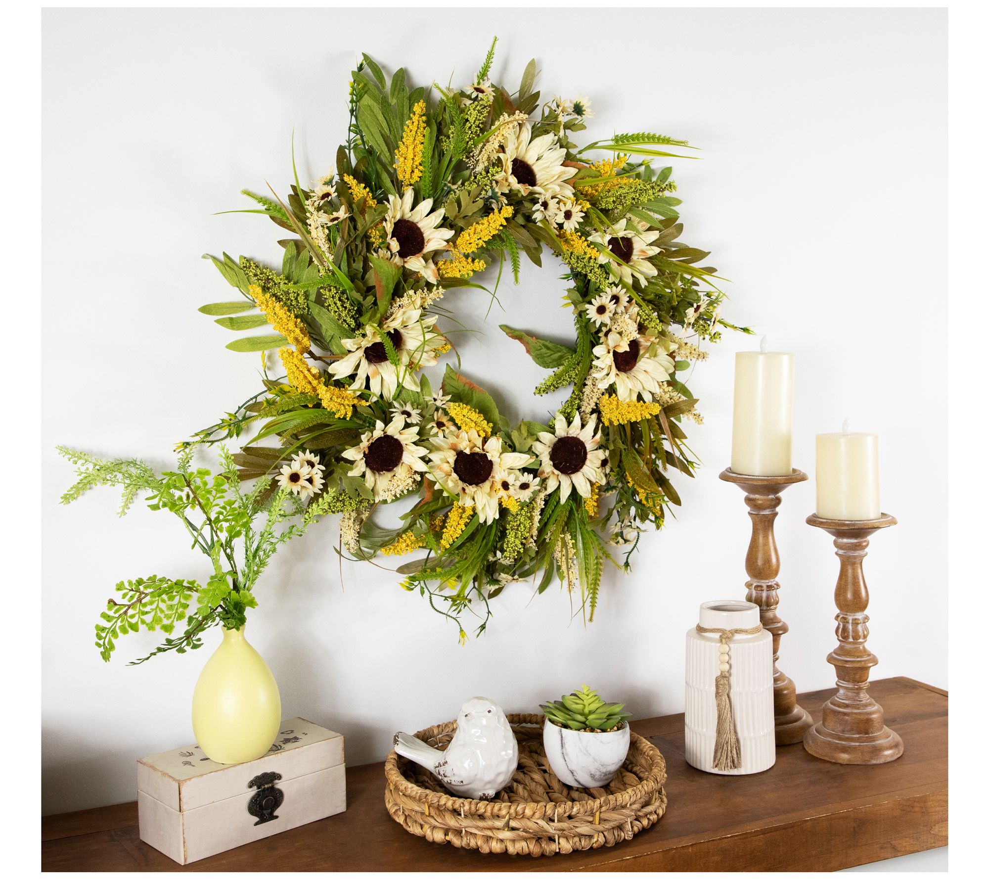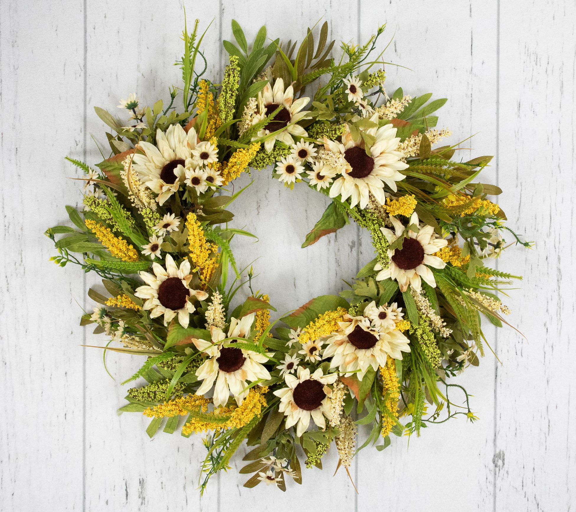 • Includes one 24" beige sunflowers artificial fall harvest wreath