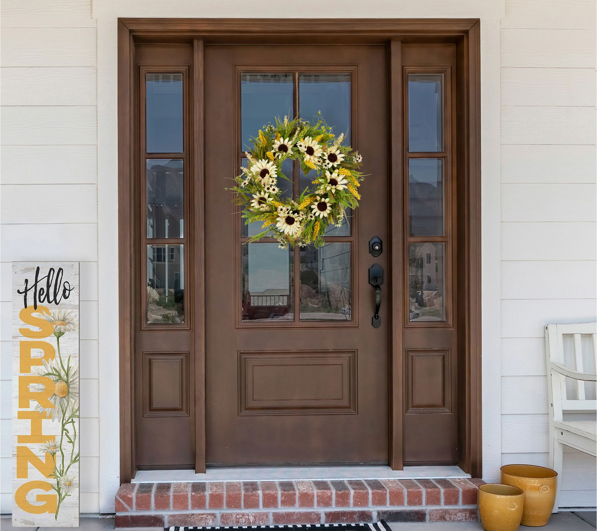 Celebrate the beauty of the season by adding a burst of color to your entryway or mantel with this sunflower wreath. Featuring pops of sunflowers, wheat accents, and lush green foliage, its vibrant design brings a cozy fall feel to your home, whether displayed on a door, wall, or window. From Northlight.