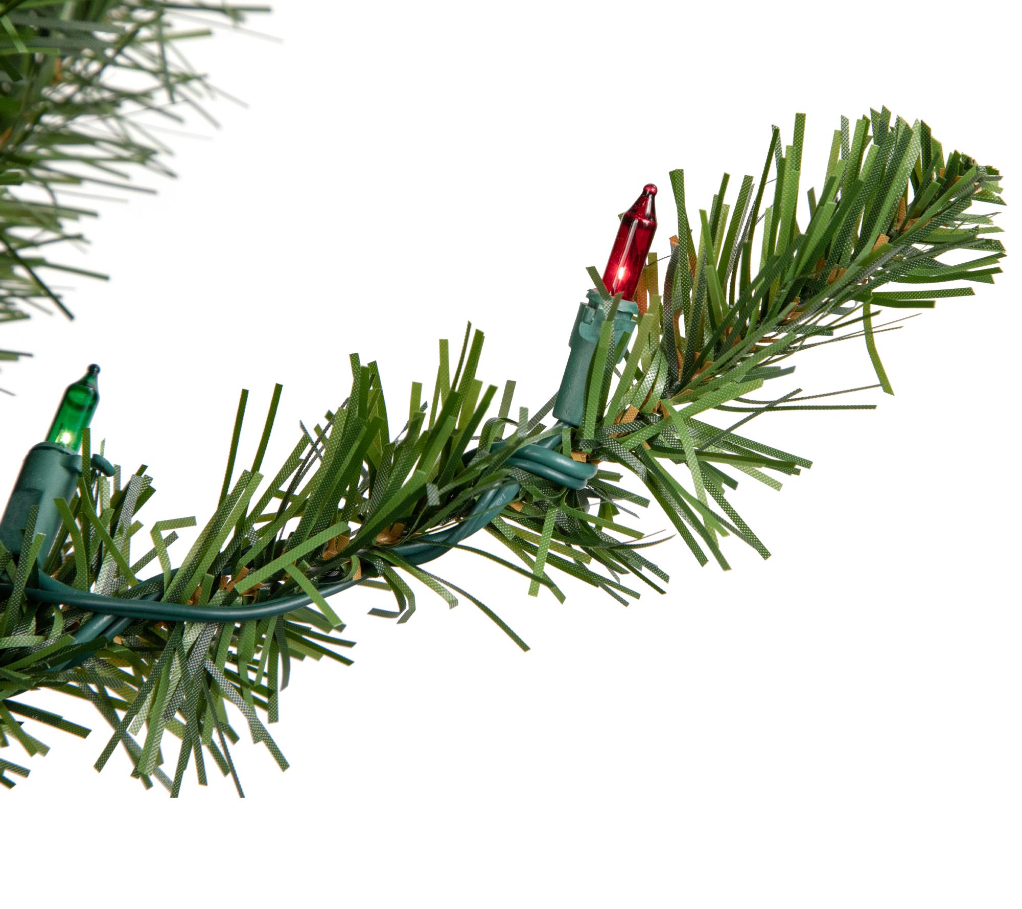 Celebrate the fun of the holiday season with this faux Canadian pine wreath, featuring lush foliage and multicolored lights for a magical glow. From Northlight.