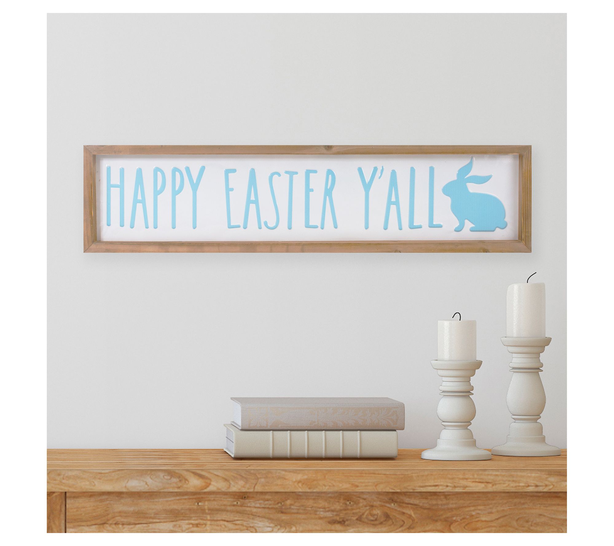 Bring a touch of springtime joy to your home with this "Happy Easter Y'all" wall sign. Ideal for egg hunt parties or simply welcoming the season, this charming plaque features a blue bunny on a white metal background, accented with vibrant colors. It arrives ready to hang, adding an instant festive flair to your decor. From Northlight.