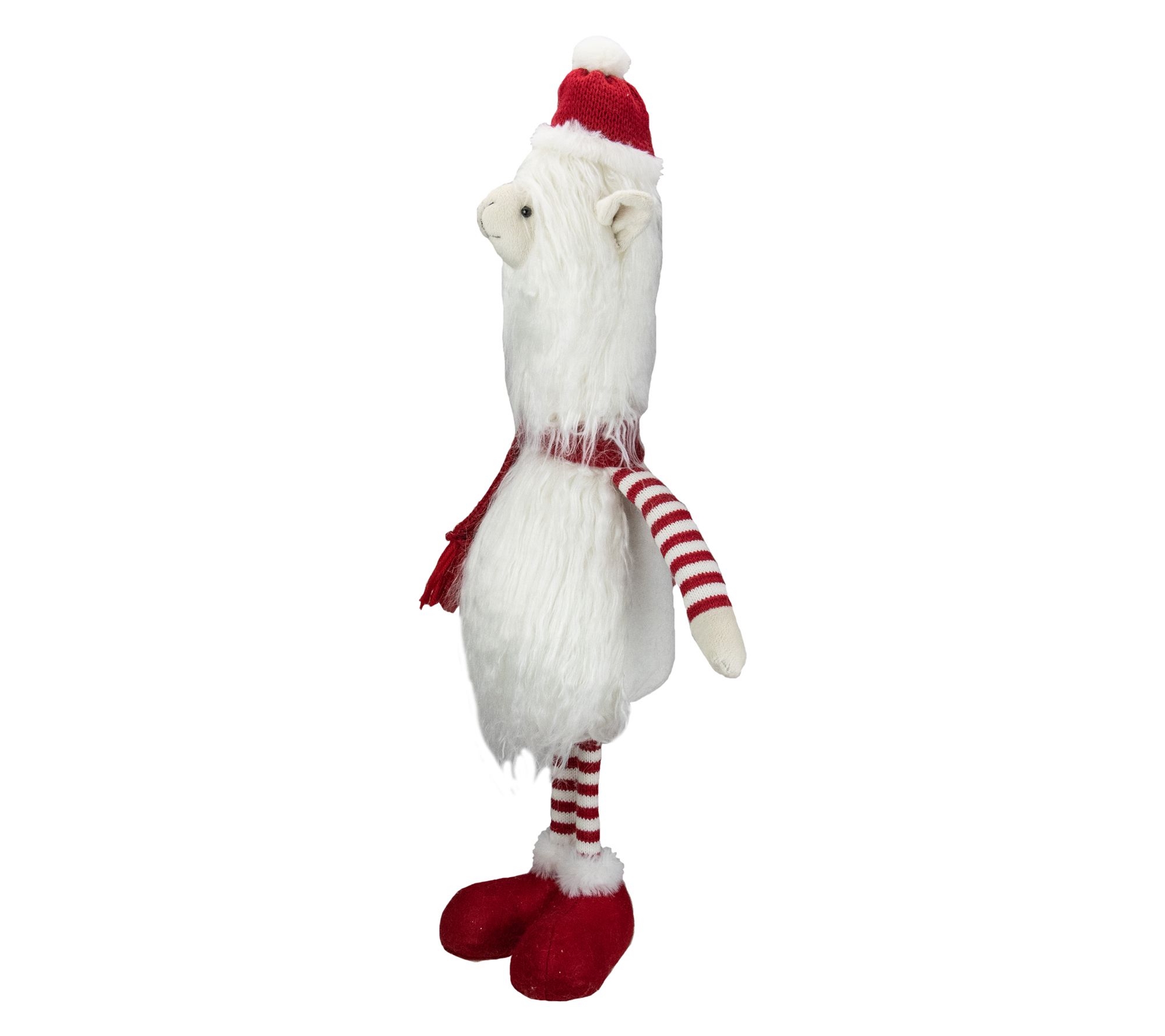 Invite joy and laughter into your seasonal celebrations with this charming llama figurine. Dressed in delightful winter attire, including a cozy red hat and scarf, this cheerful character stands ready to light up your holiday gatherings. Its playful design, accented by striped limbs and faux fur-trimmed boots, makes it an irresistible addition to your festive decor, bringing smiles to the faces of all who visit, perfect for adding a whimsical touch to any holiday setting. From Northlight.