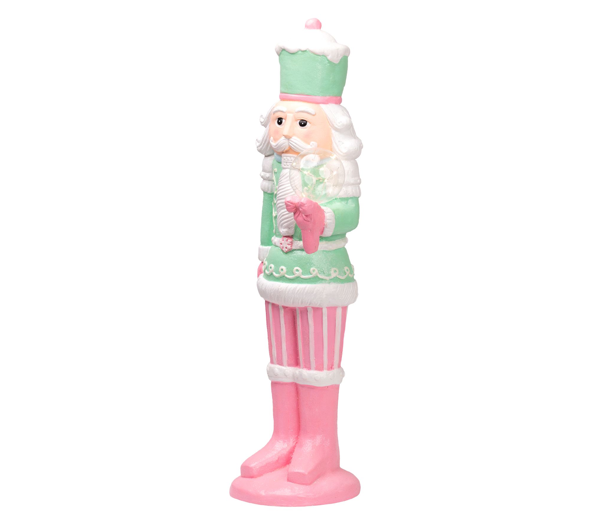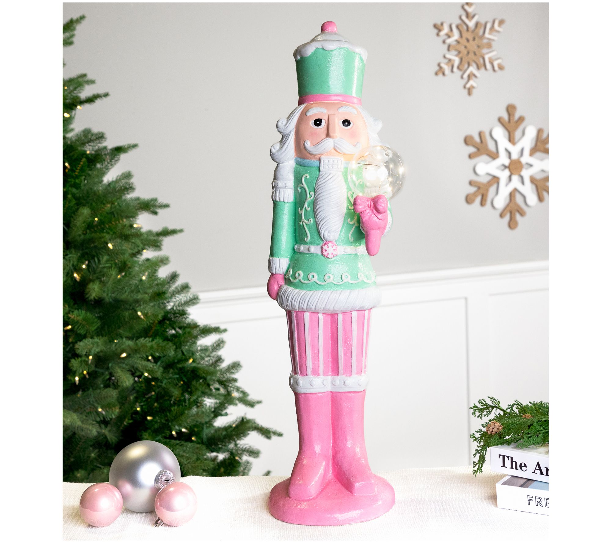 Brighten up your holiday festivities with this charming LED-lit nutcracker, perfect for adding a whimsical touch to your indoor decor. Picture him standing proudly in your entryway, the warm white LED micro lights in his globe casting a magical glow. He stands tall, ready to greet guests with festive cheer. Its delightful presence adds a touch of holiday magic wherever it resides, making it a must-have for the season. From Northlight.