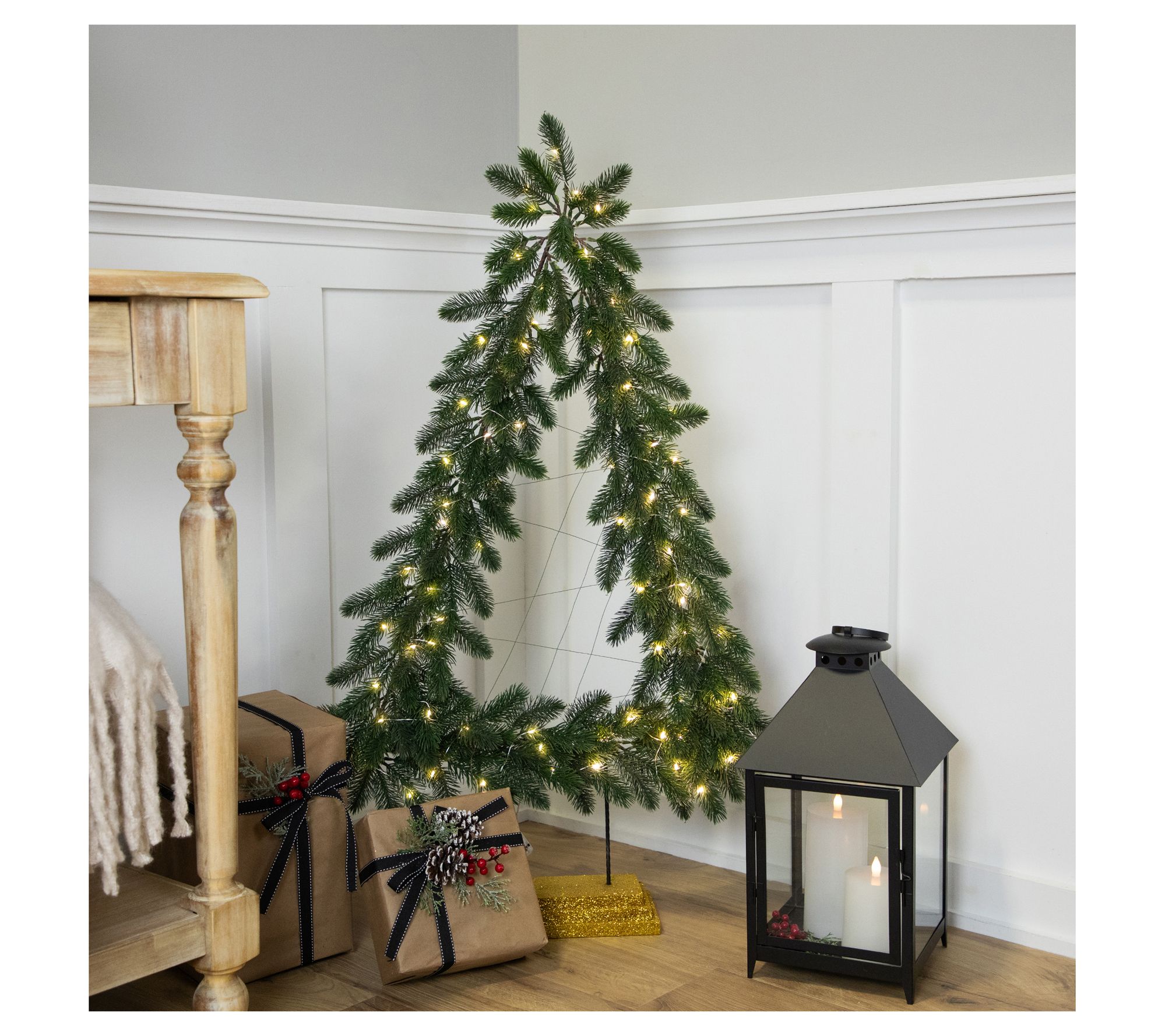 Create a festive glow in your home this holiday season with a vibrant faux pine garland tree, prelit with warm LED lights. Its glittered goldtone base and enchanting light display complement any space, adding a cozy touch to your festivities. Picture this charming decoration transforming your room with its welcoming warmth every evening. From Northlight.