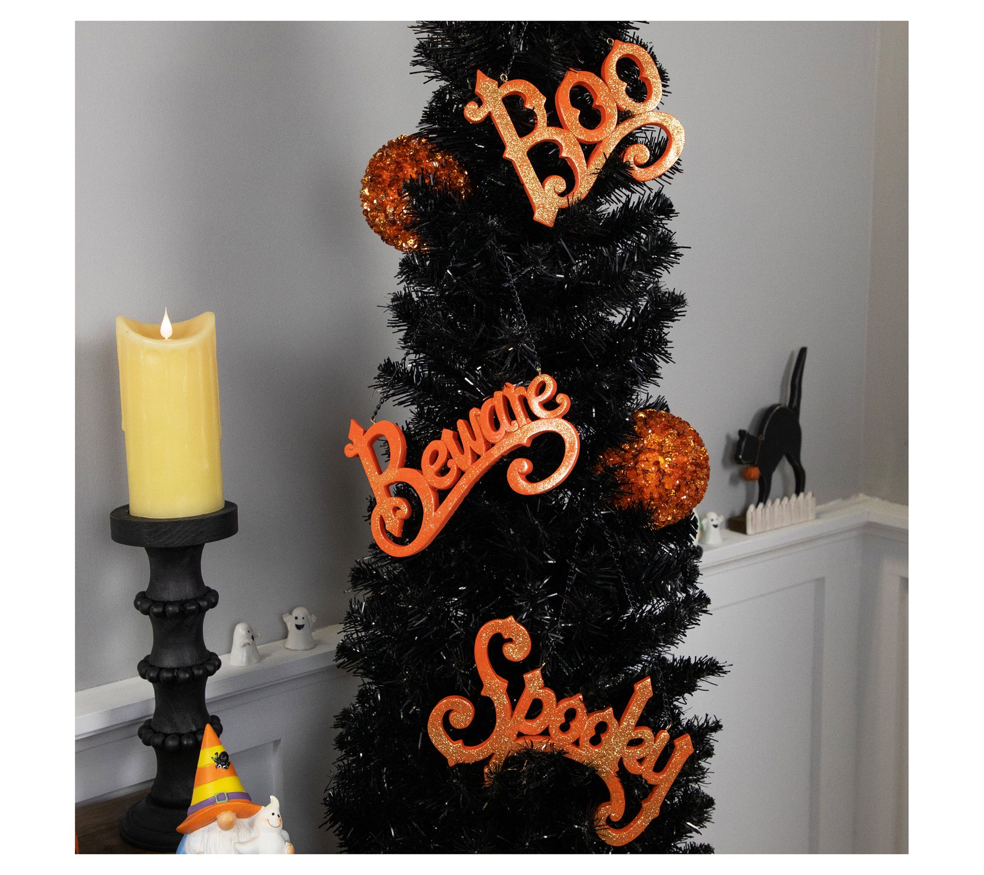 • Includes three Halloween signs: Boo, Spooky, and Beware