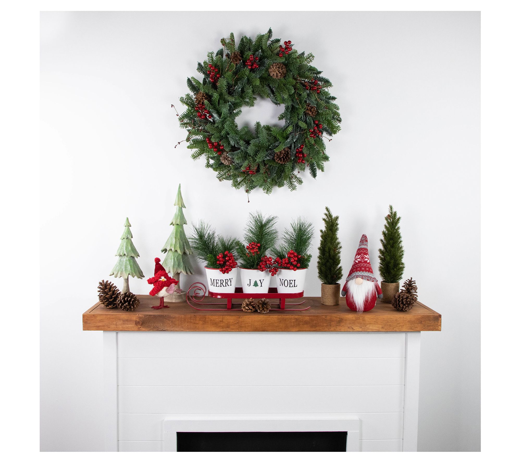 Welcoming friends and family gets even cozier when you hang this festive wreath, complete with clusters of red berries and rustic pinecones. Try it above your mantel for a warm seasonal accent, or add it to your entryway to greet guests with holiday charm. Enjoy adding your own twinkle lights or ribbon for a custom touch. From Northlight.