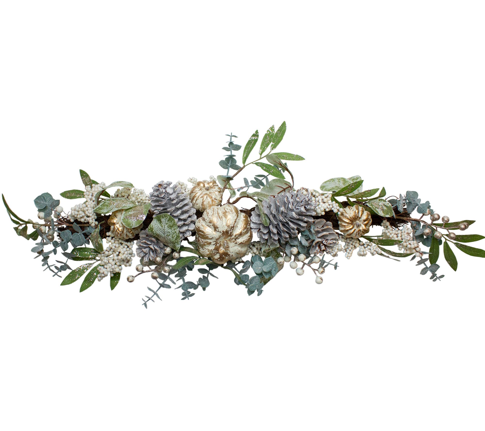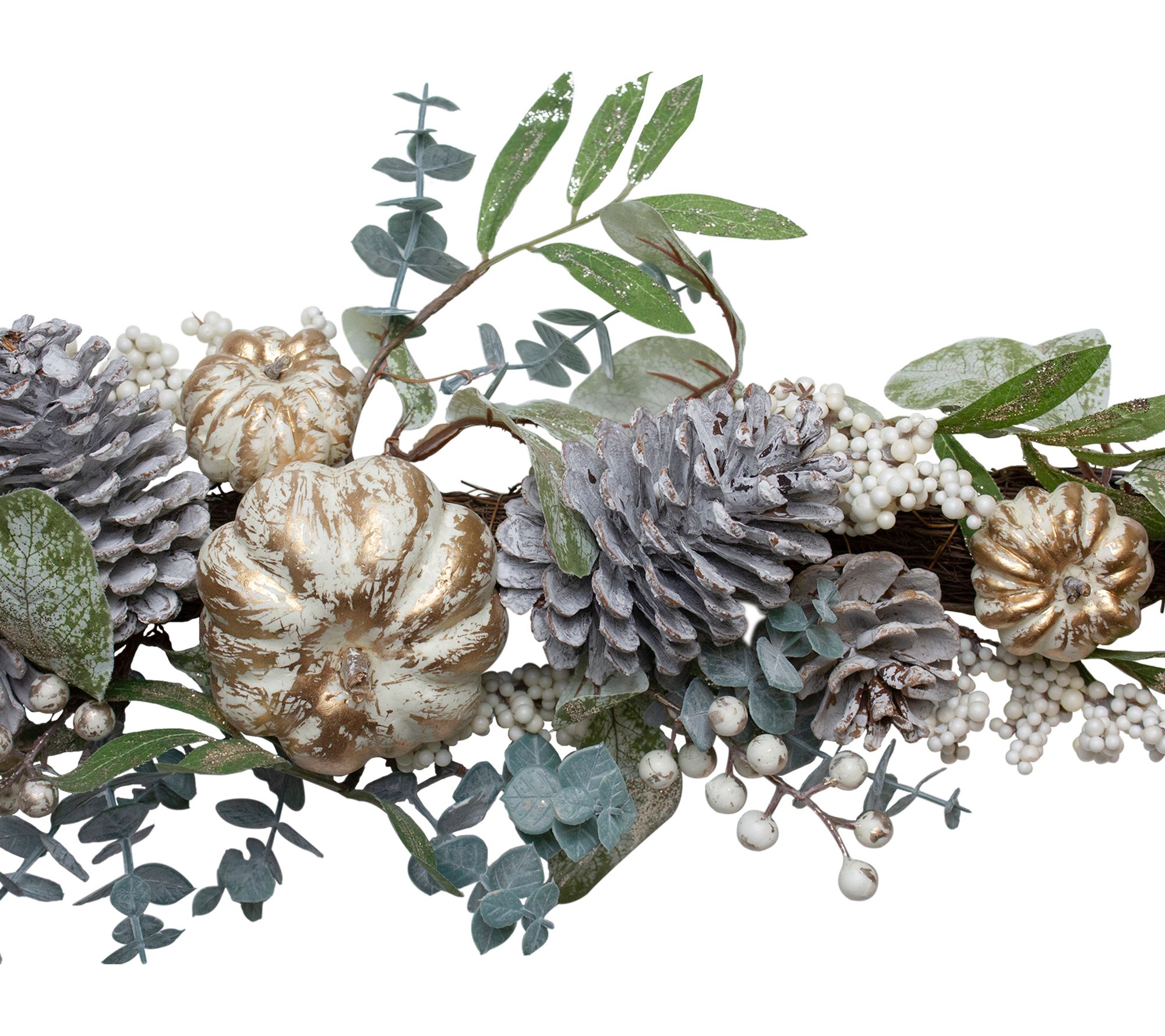 A green and white palette with gold and glitter accents lends luxe appeal to this fall-inspired swag. From Northlight.